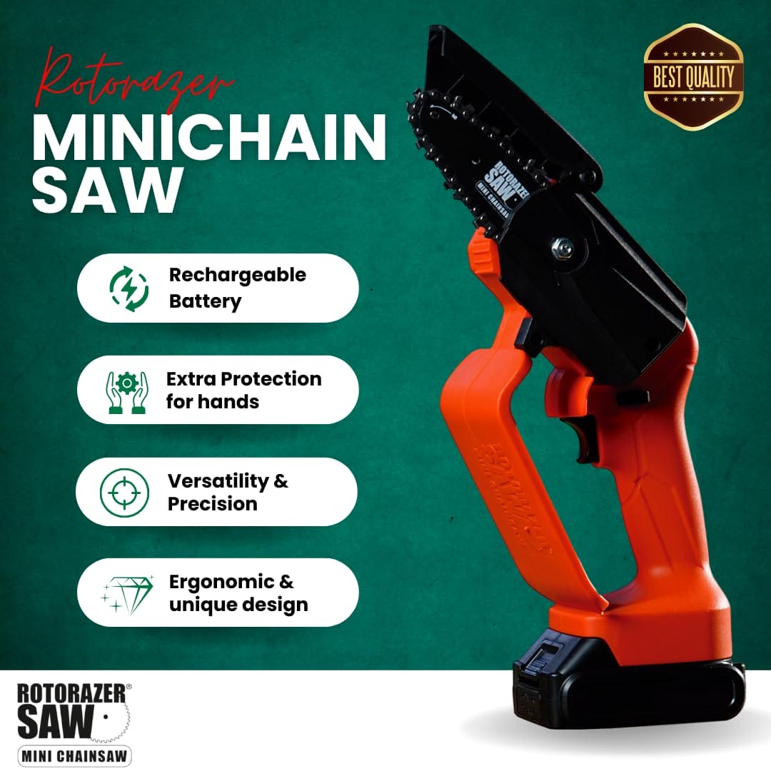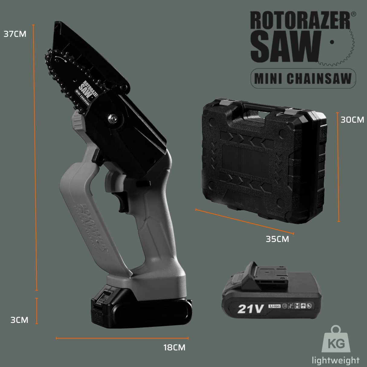 Krótki opis: ROTOZAZER Mini akumulatorowa piła łańcuchowa Mini ChainSaw – Bezprzewodowa przenośna elektryczna piła łańcuchowa do cięcia drewna gałęzie ogrodowe i przycinanie drzew. Najlepsza oferta na rynku.