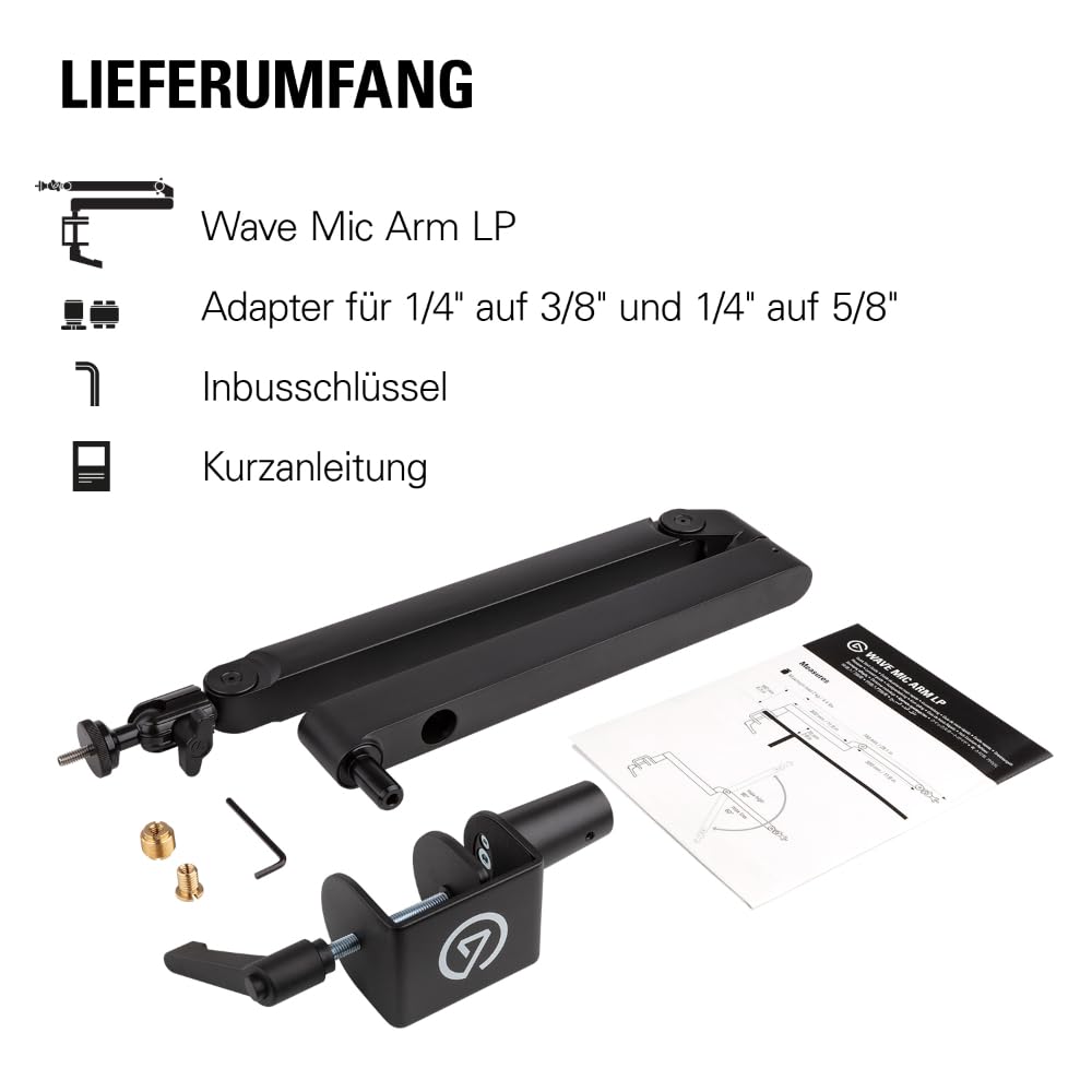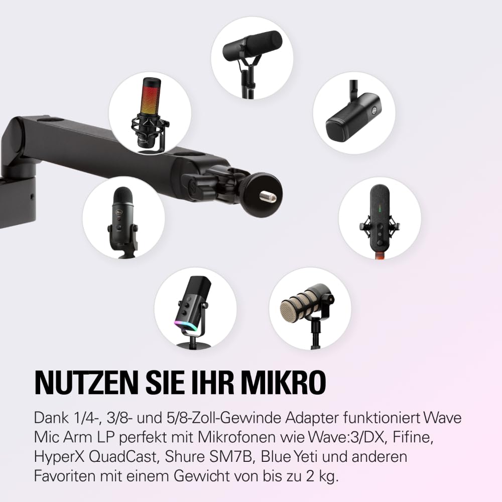 Elgato Wave Mic Arm LP – niskoprofilowe ramię mikrofonu premium, system zarządzania kablami, zacisk stołowy, wszechstronność i pełna regulacja, do podcastów, transmisji, biura domowego itp.