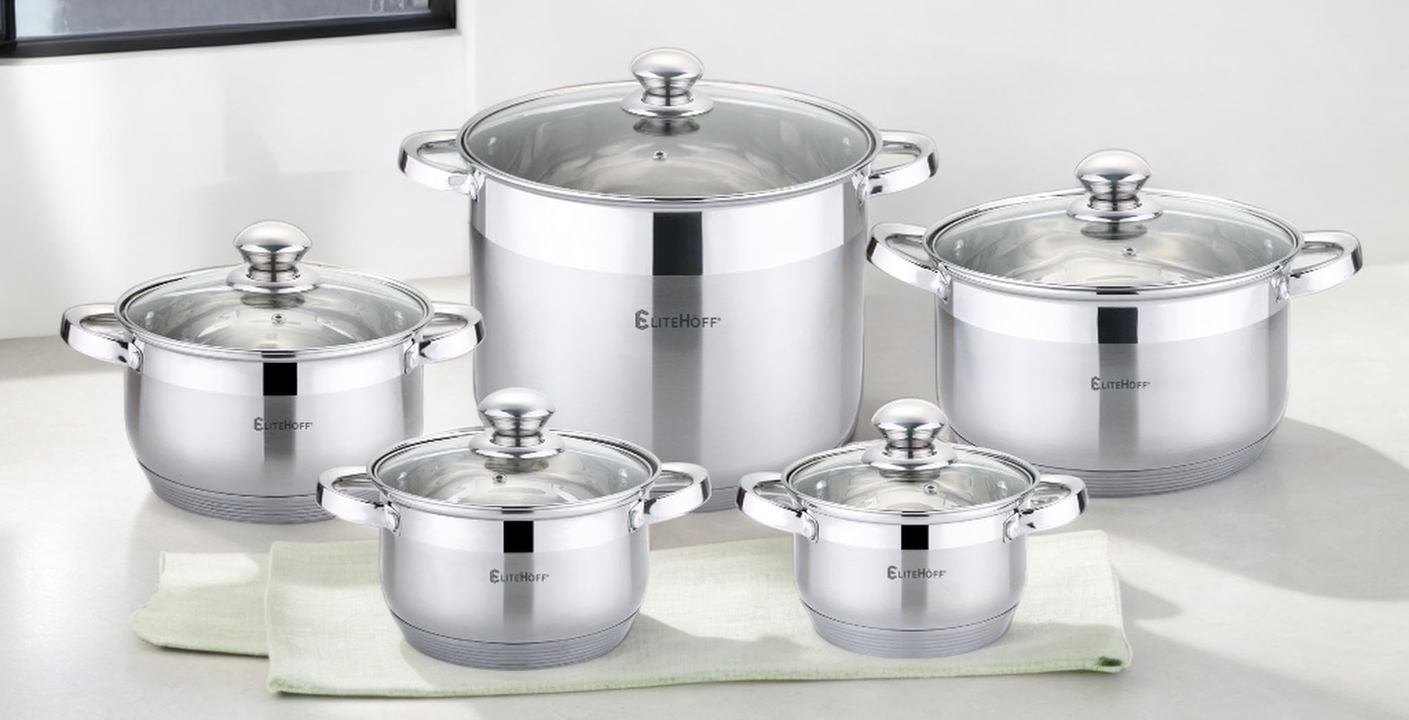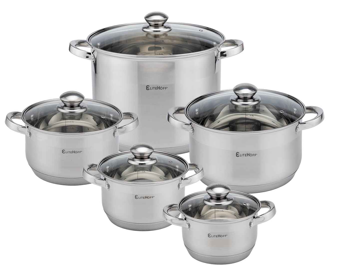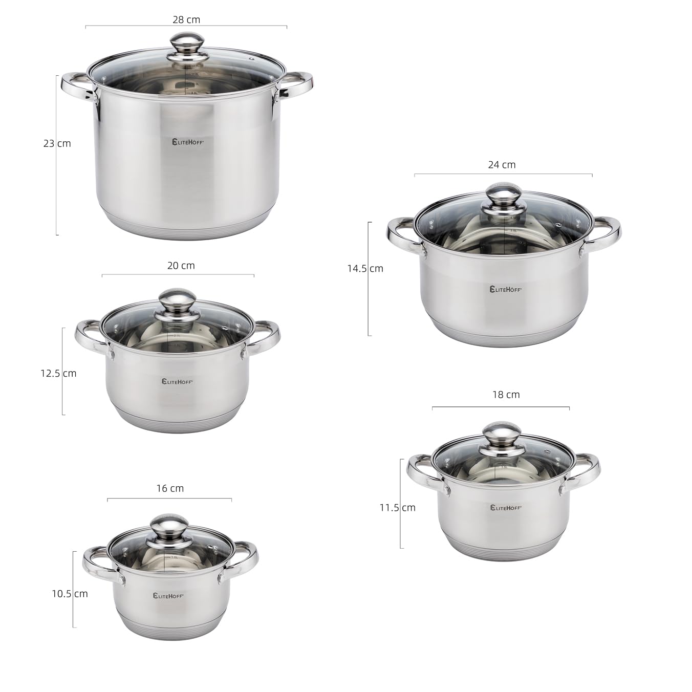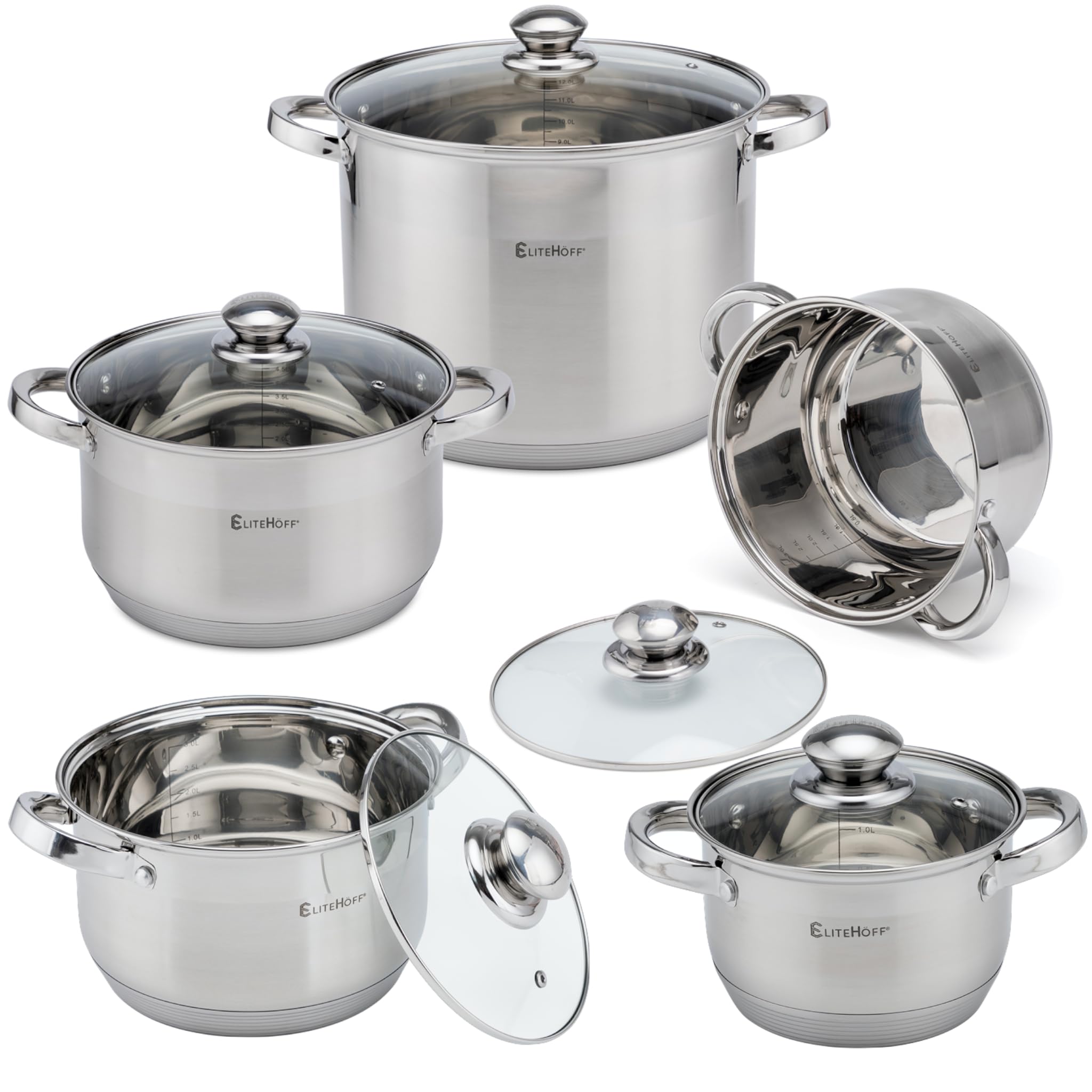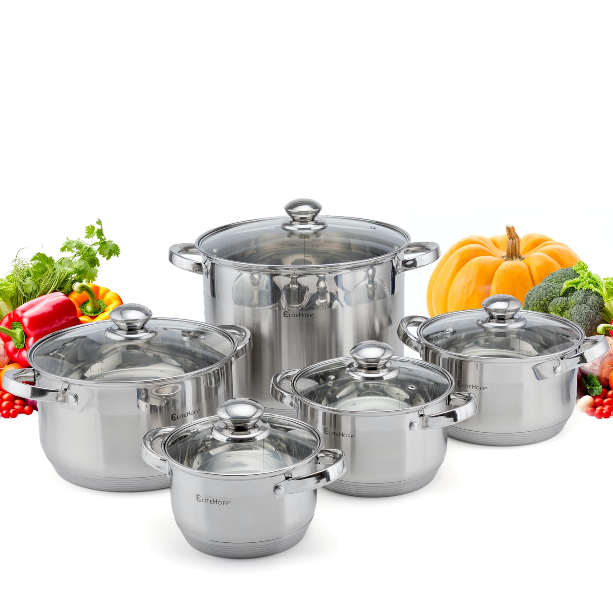 EliteHoff 10-Częściowy Zestaw Garnków Indukcyjnych, 7-Warstwowy Garnek ze Stali Nierdzewnej, Zestaw 5 Garnków z Pokrywkami, do Wszystkich Typów Kuchenek
