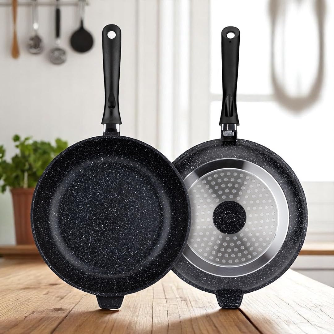 ✅ ✅ Łatwe czyszczenie: ✅ Łatwe czyszczenie i oszczędność miejsca: Powłoka odporna na zarysowania i nieprzywierająca zapewnia szybkie i łatwe czyszczenie – zarówno ręcznie, jak i w zmywarce. Garnki można układać jeden na drugim, co pomaga zaoszczędzić cenną przestrzeń w szafkach, a patelnie mają otwory do zawieszania na ha