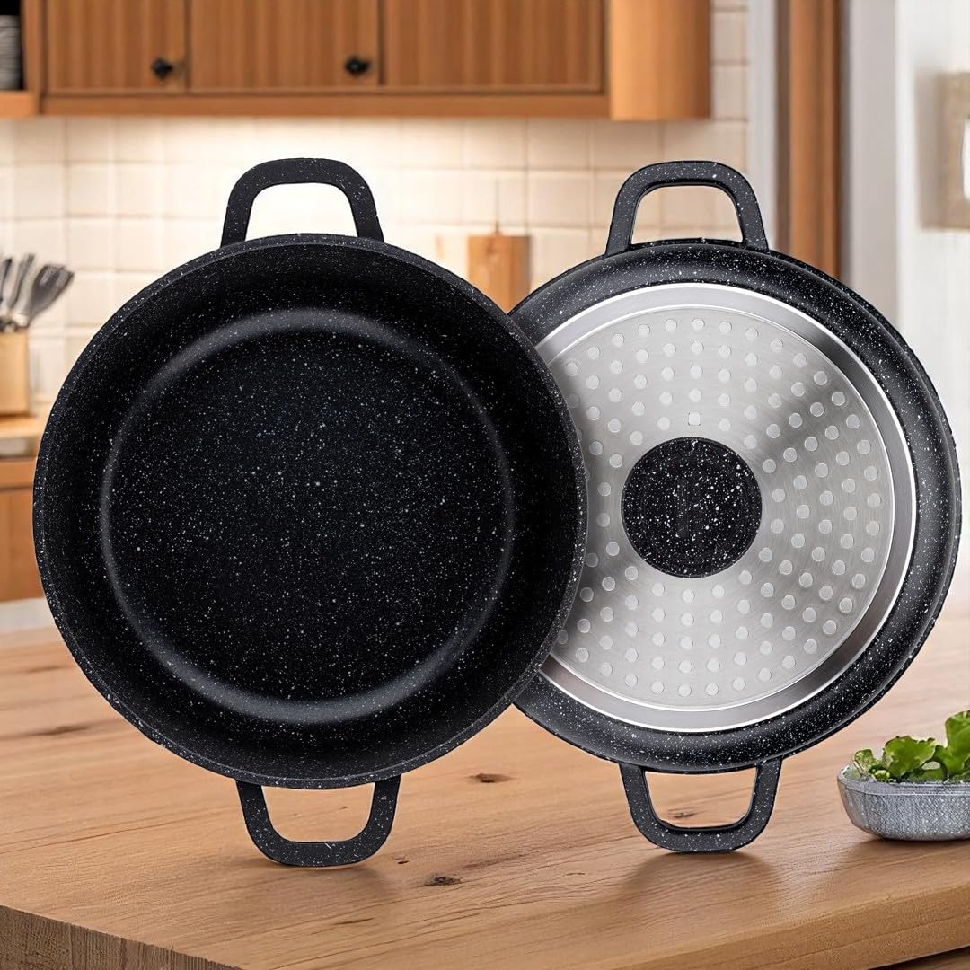 ✅ ✅ Innowacyjna pokrywka: ✅ Innowacyjna pokrywka z aromatyzerem i pokrętłem Aroma Knob dla głębszego smaku: Pokrywki z hartowanego szkła wyposażone są w wbudowane pokrętło Aroma Knob ze stali nierdzewnej, które pozwala dodawać olej lub przyprawy bez potrzeby podnoszenia pokrywki. Zintegrowane otwory na parę zapobiegają wykip