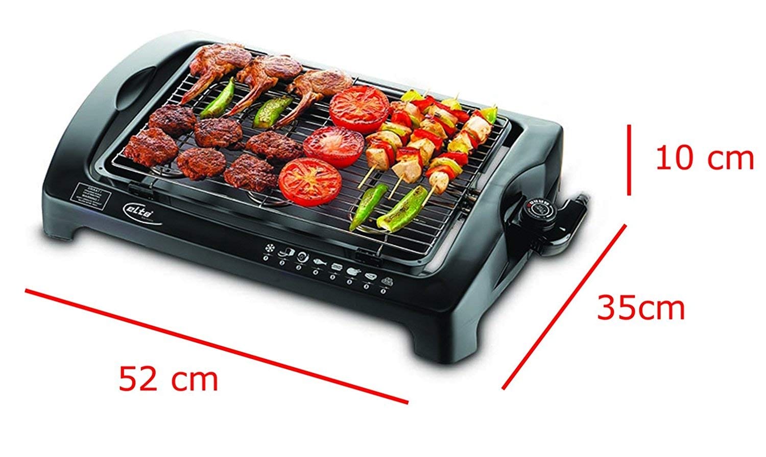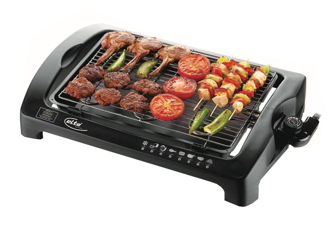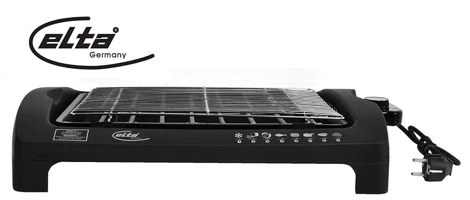Einzelheiten: Mit diesem praktischen Tischgrill von Elta ist Grillen sogar das ganze Jahr möglich. Denn das rauchfreie Grillen können Sie im Garten, auf dem Balkon oder sogar im Wohnzimmer praktizieren. Kein Nachbar fühlt sich durch stickige Rauchschwaden belästigt und es entsteht kein krebserregende Kohlenrauch. Zusätzlich ist kein Zukauf von Gas oder Grillkohle notwendig. Das überschüssige Fett des Grillgutes tropft in die Fettschale mit Wasser und kann nach dem Grillen einfach entsorgt werden. Der Grillrost und die Fettschale sind herausnehmbar und leicht in der Spülmaschine zu reinigen. Der Elektrogrill hat Cool Touch Griffe die nicht warm werden. So können Sie die Griffe vom Grill jederzeit anfassen und diesen transportieren. Weitere Sicherheitsaspekte bestehen aus der Sicherheitssperre bei Überhitzung, die Thermostatkontrolle, die Schmelzsicherung und Kontrollleuchte.