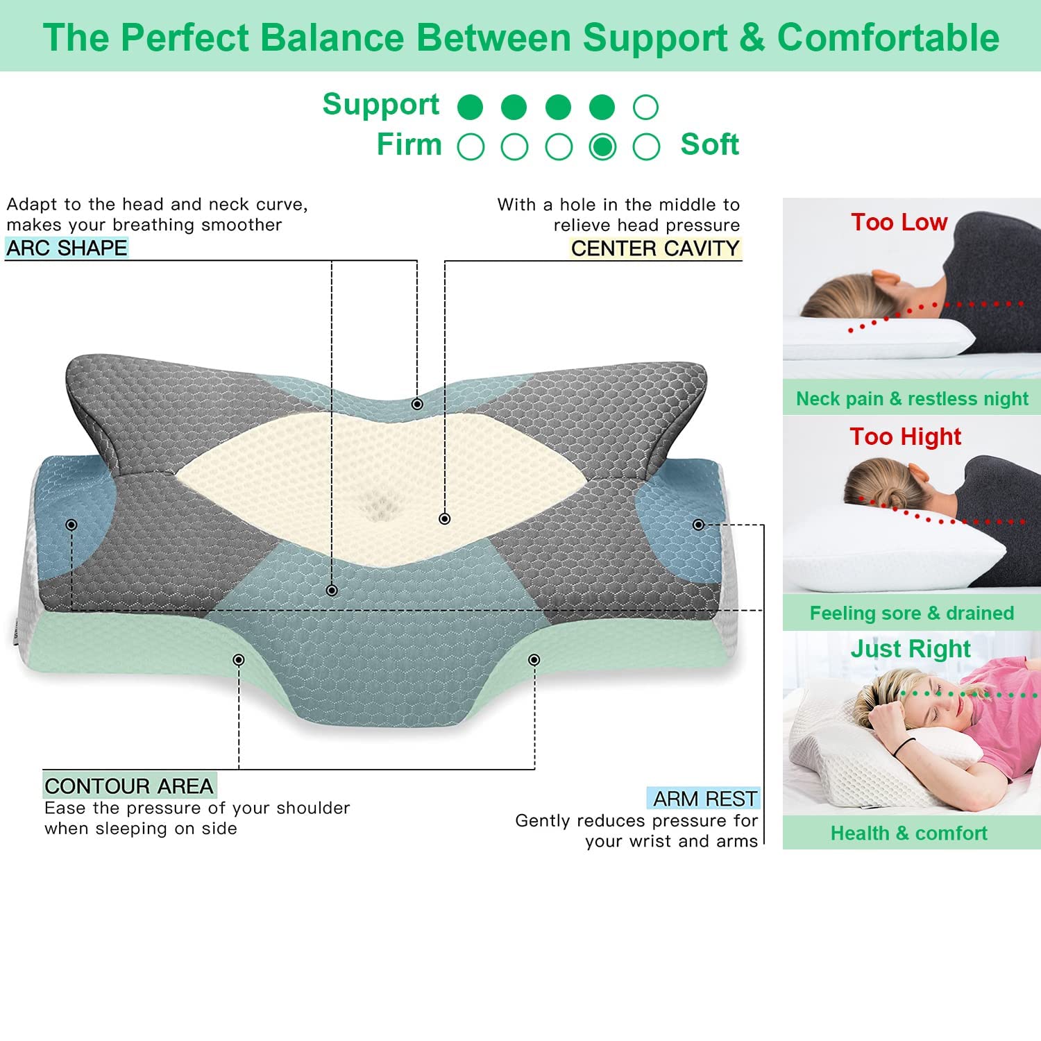 Elviros kręgosłup ortopedyczna poduszka pod głowę z pianki memory poduszki konturowe na ból szyi i ramion ergonomiczna ortopedyczna poduszka profilowana pod szyję dla (Niebieska) to innowacyjne rozwiązanie dla osób cierpiących na ból szyi, ramion i kręgosłupa. Ta niebieska poduszka została zaprojektowana z myślą o zapewnieniu maksymalnego komfortu i wsparcia dla Twojego ciała.