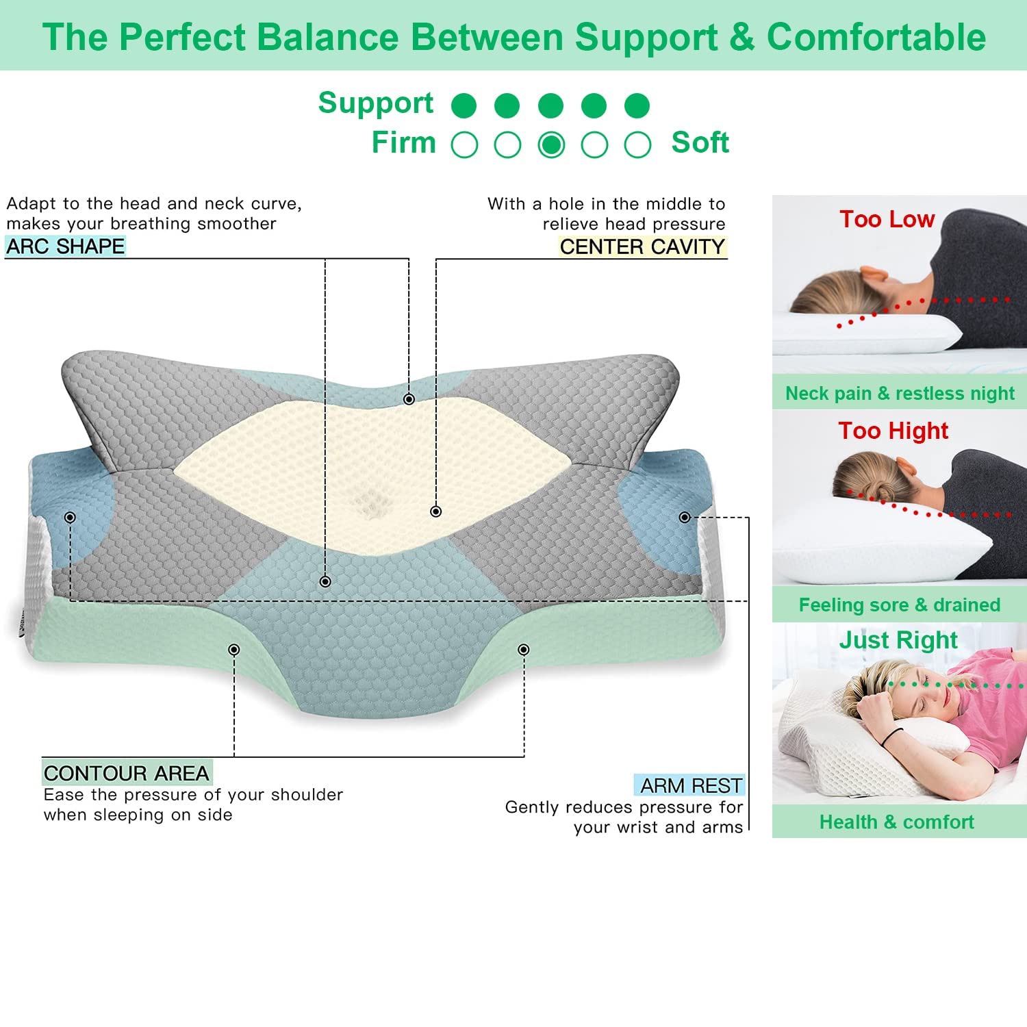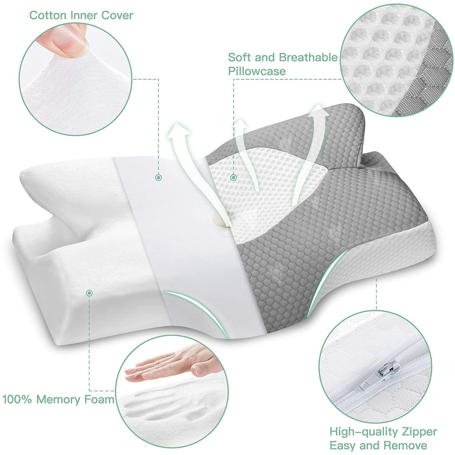 Elviros Zervikale ortopedyczna poduszka pod głowę z pianki memory, zdejmowana, ergonomiczna poduszka pod kark dla osób śpiących na boku