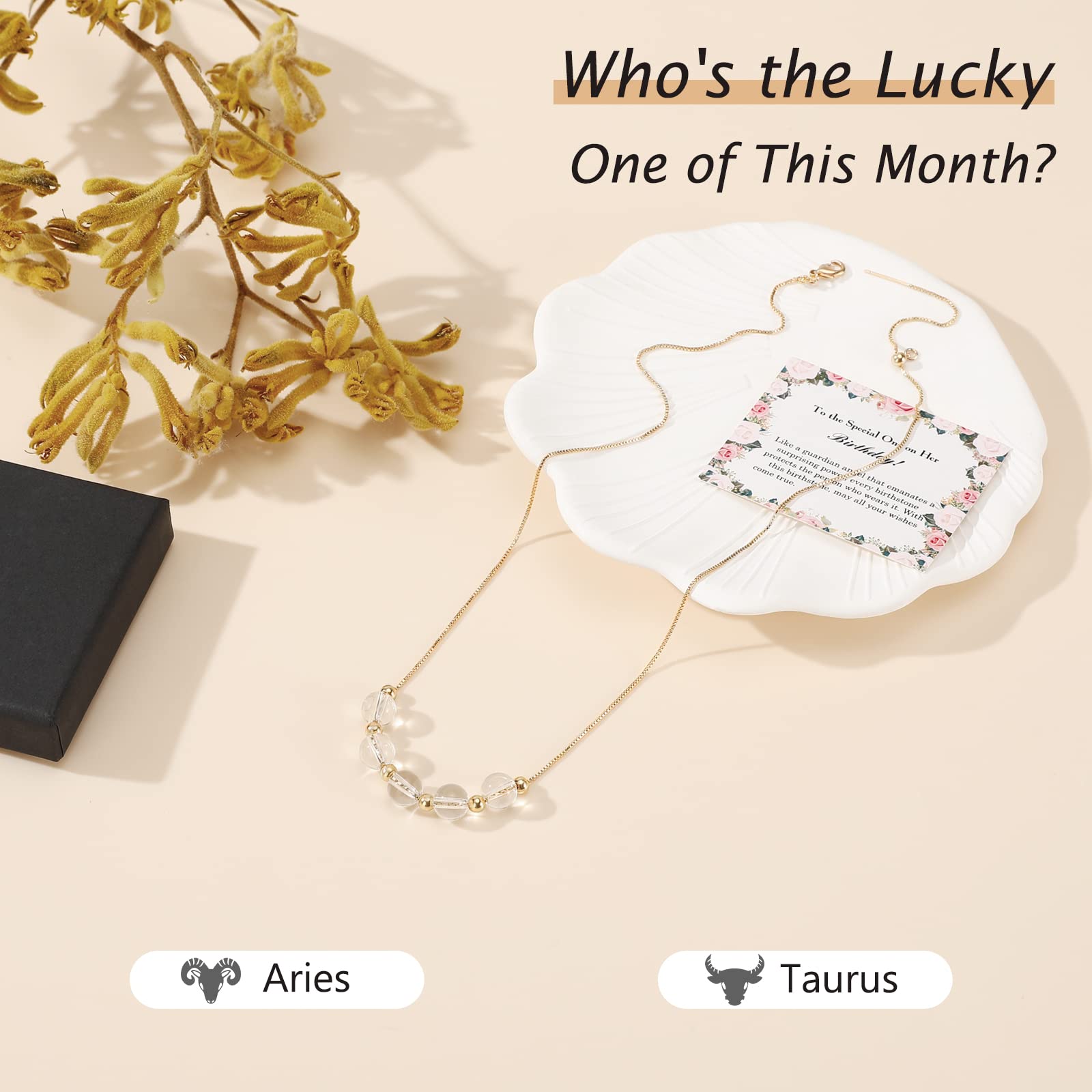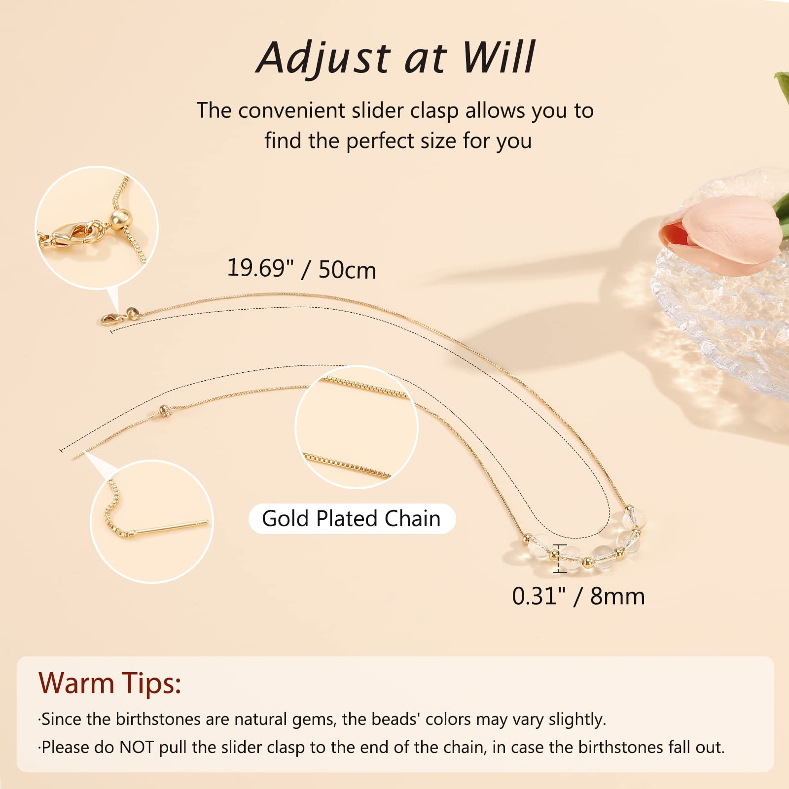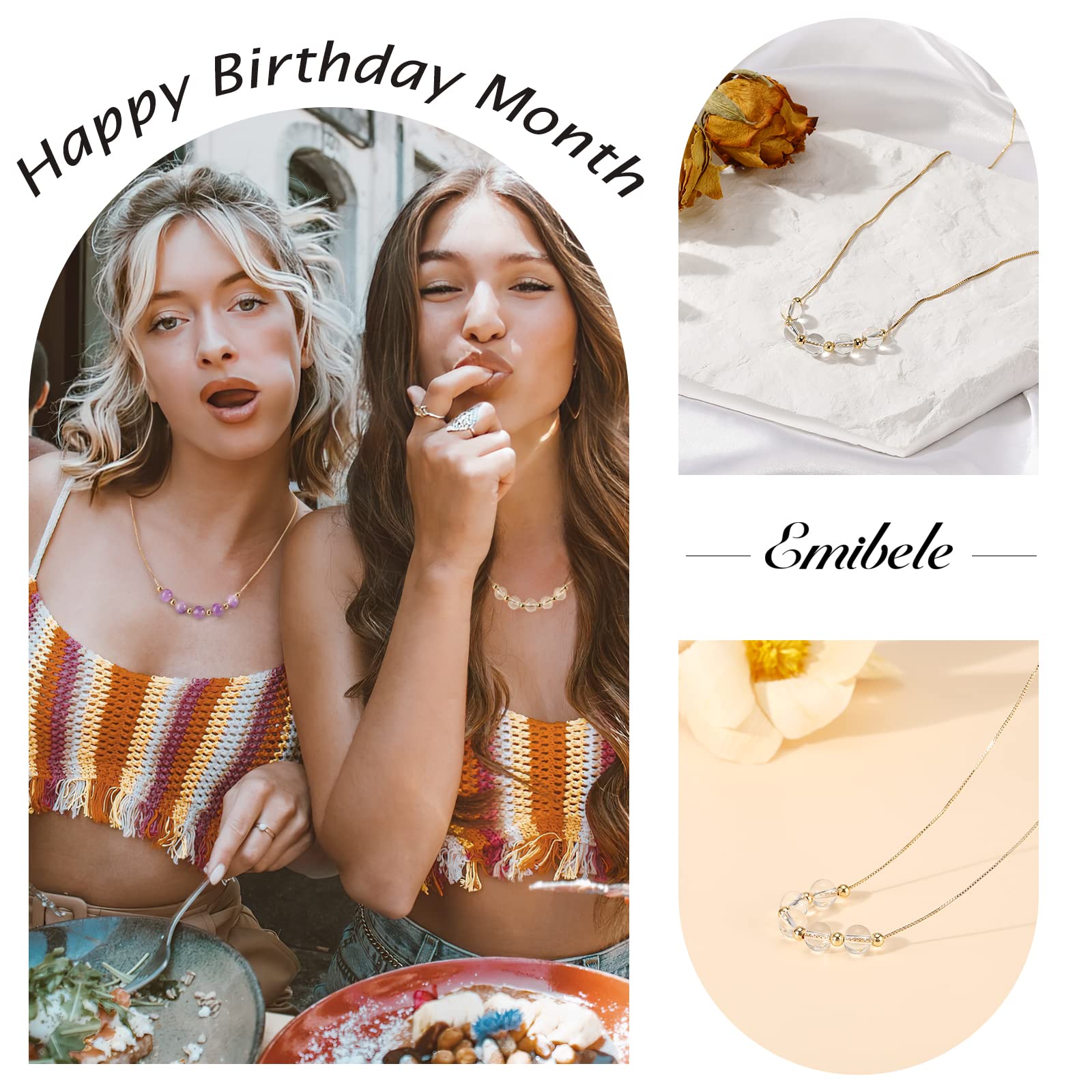 Kolczyk z kamieniem urodzenia Emibele dla kobiet i dziewcząt – naszyjnik z kryształem górskim, pozłacany, ozdobiony koralikami. Naszyjnik z kamieniem urodzenia kwietnia – biżuteria z kryształem, idealny prezent dla mamy, żony i niej