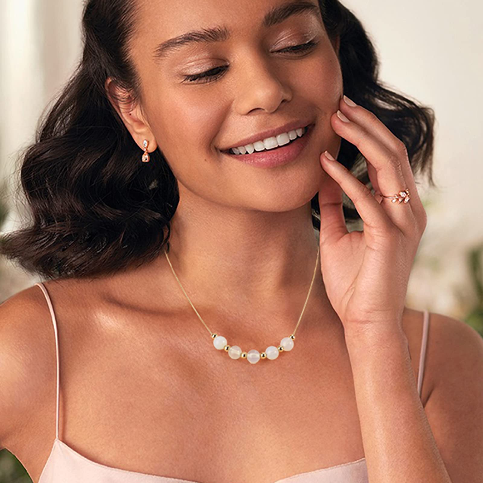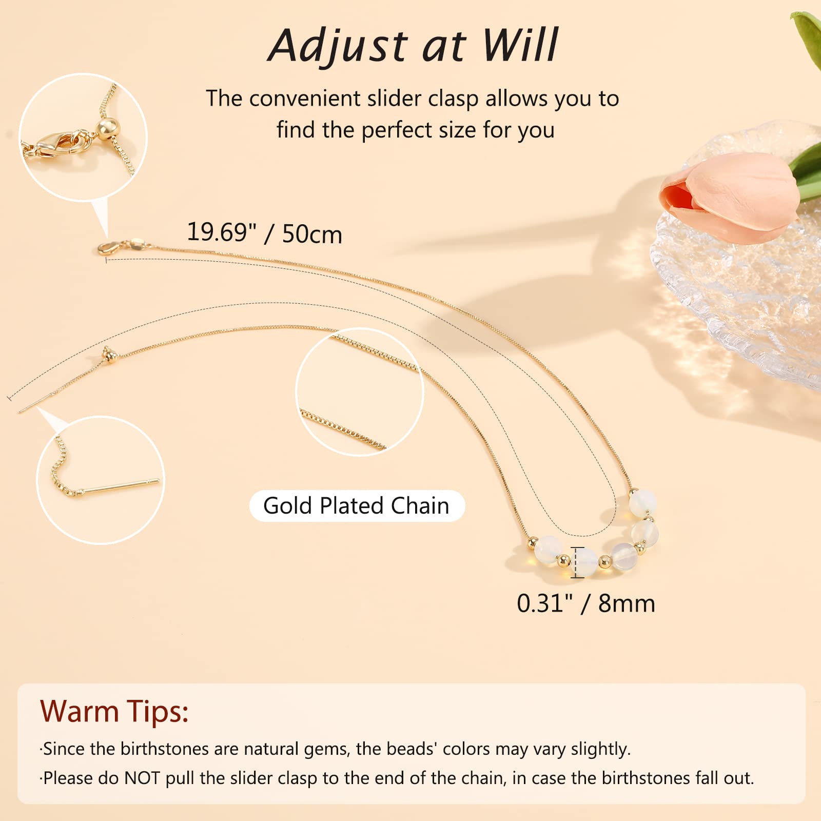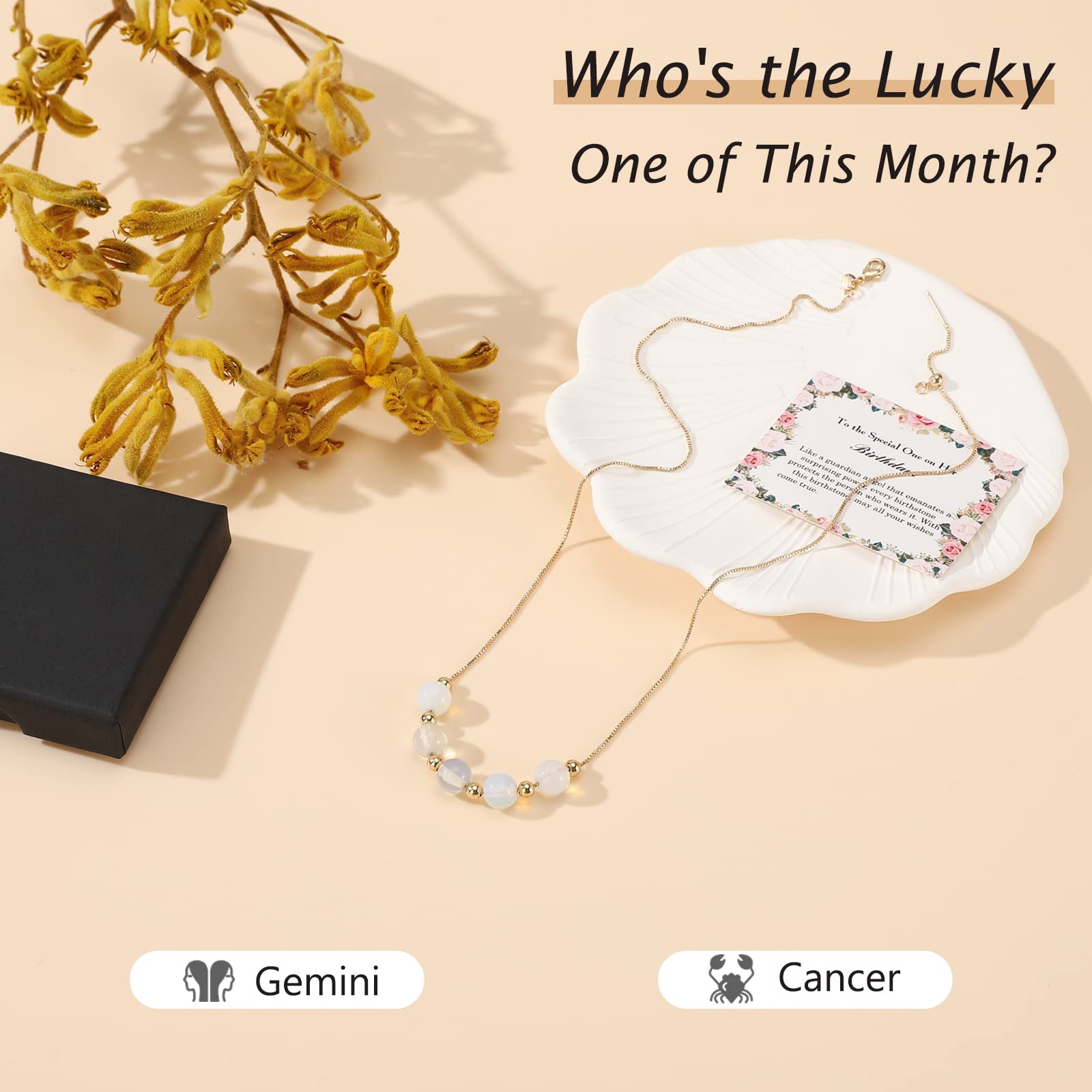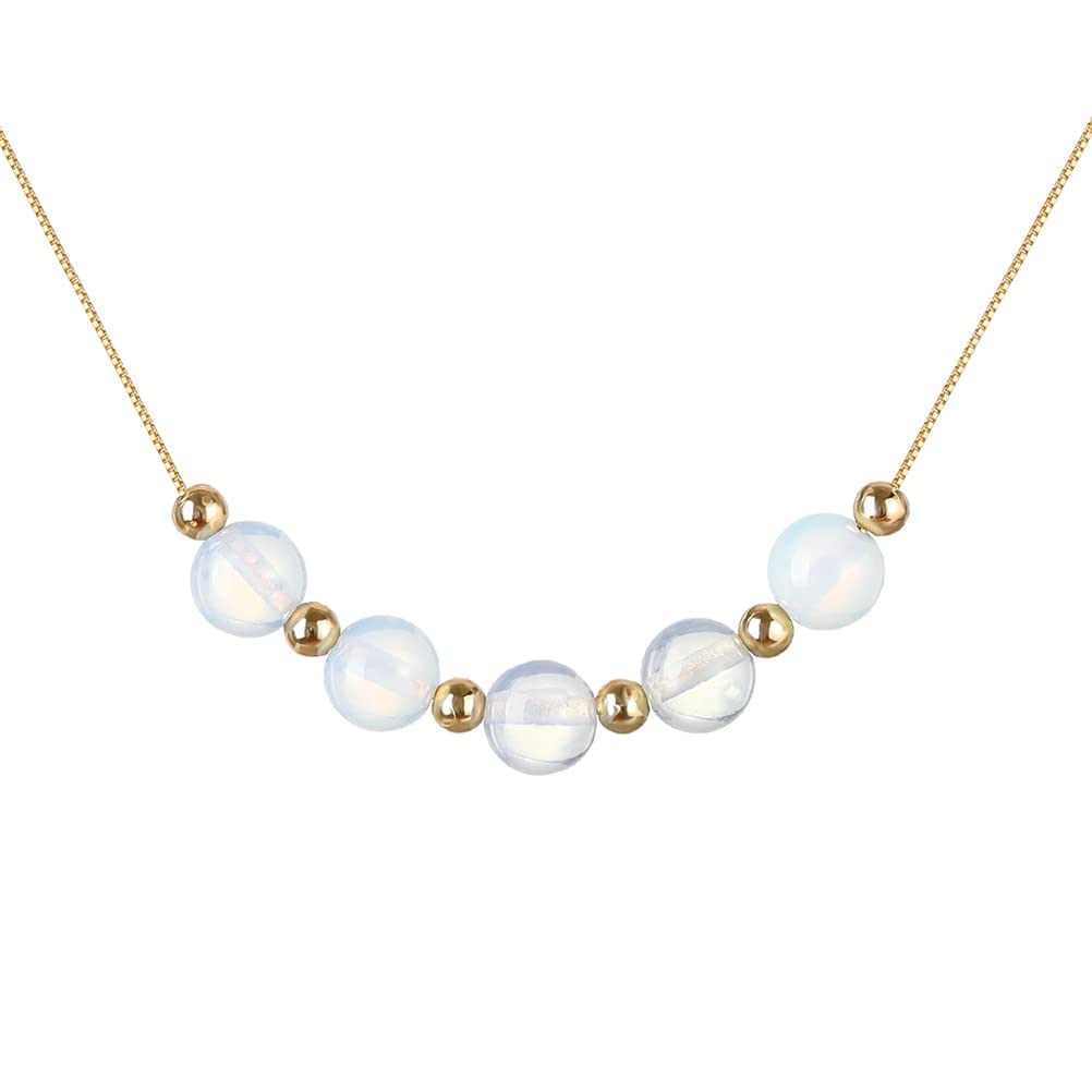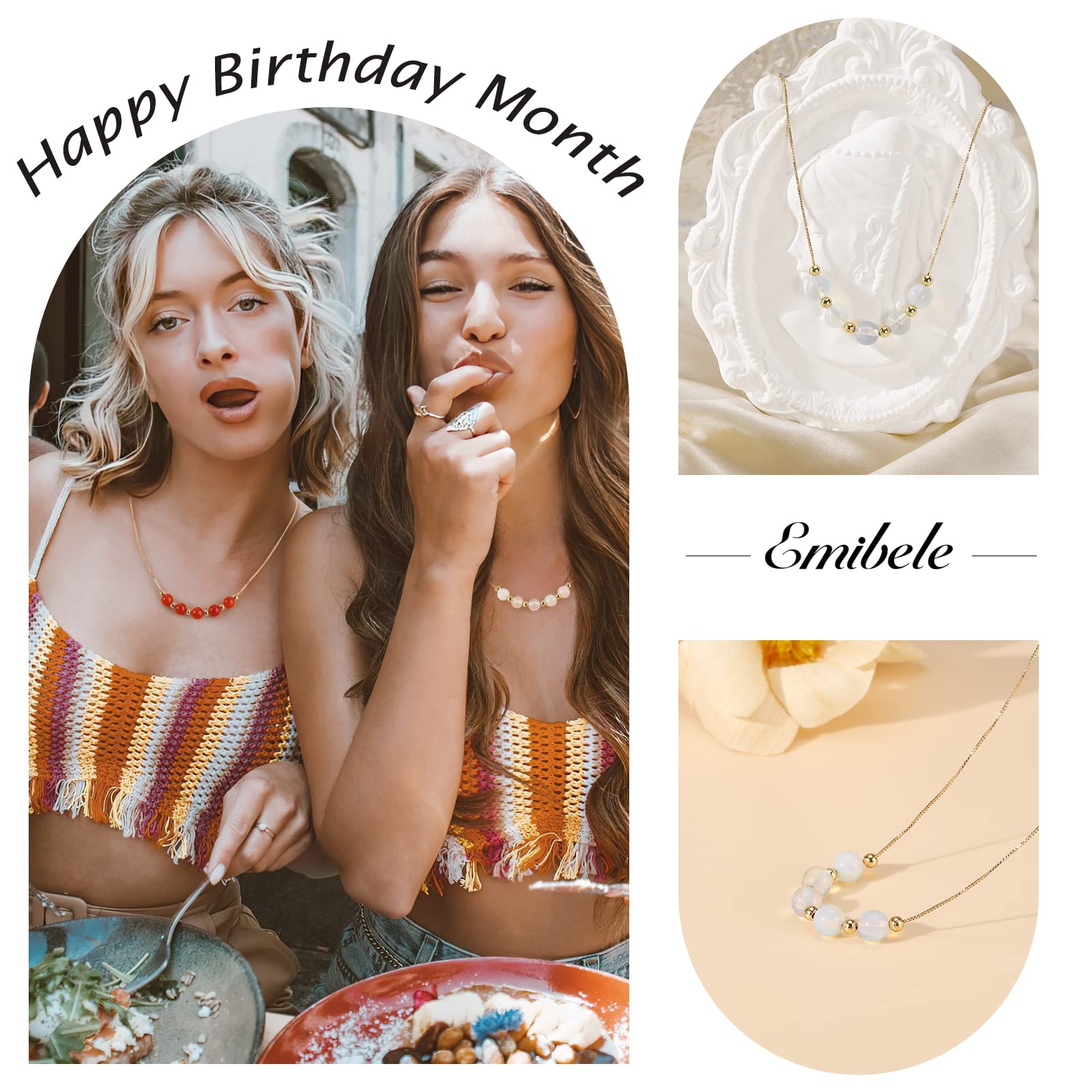Kolczyk z kamieniem urodzeniowym Emibele dla kobiet i dziewcząt – naszyjnik z kamieniem księżycowym, pozłacany, ozdobiony uroczymi koralikami, idealny prezent na urodziny dla mamy, żony czy ukochanej