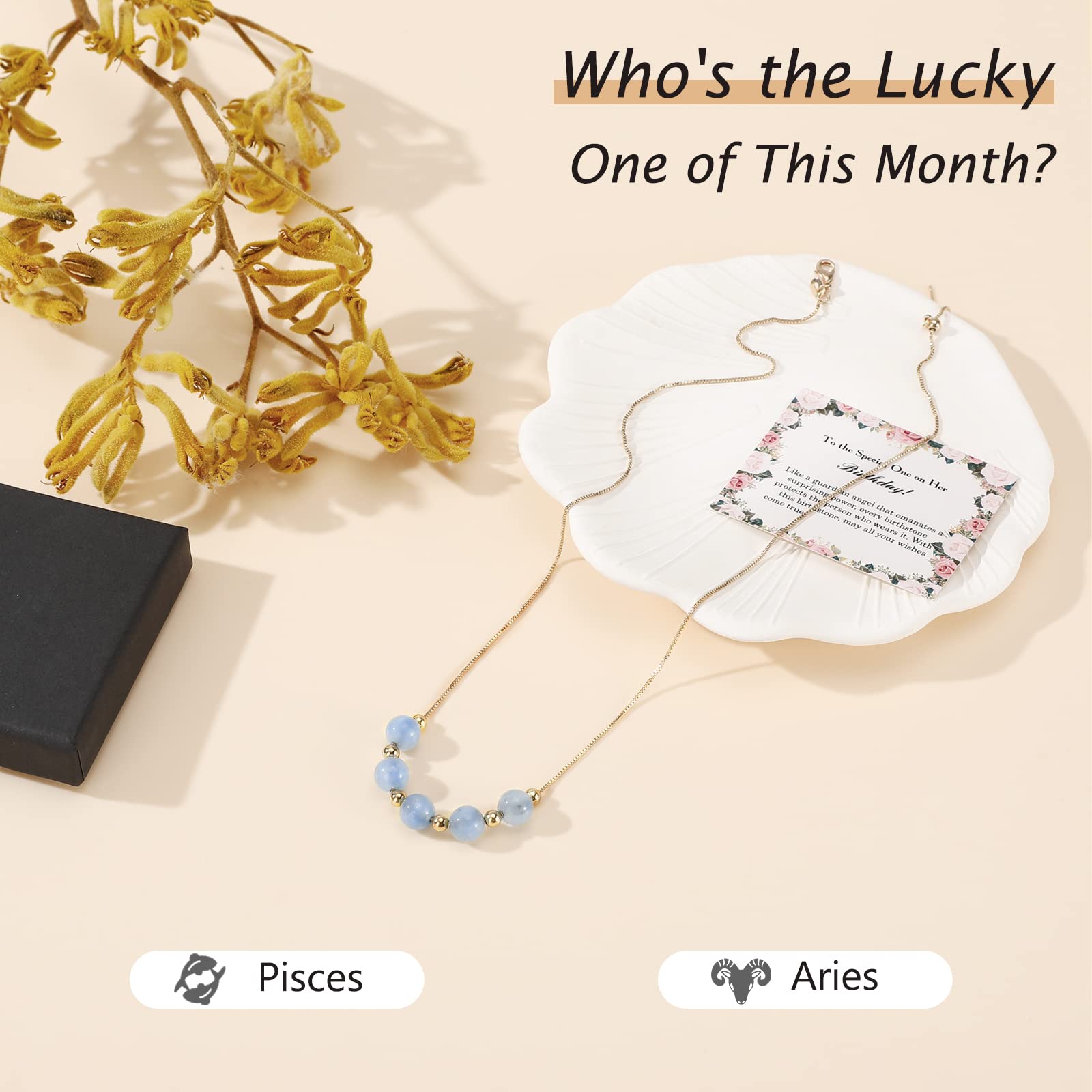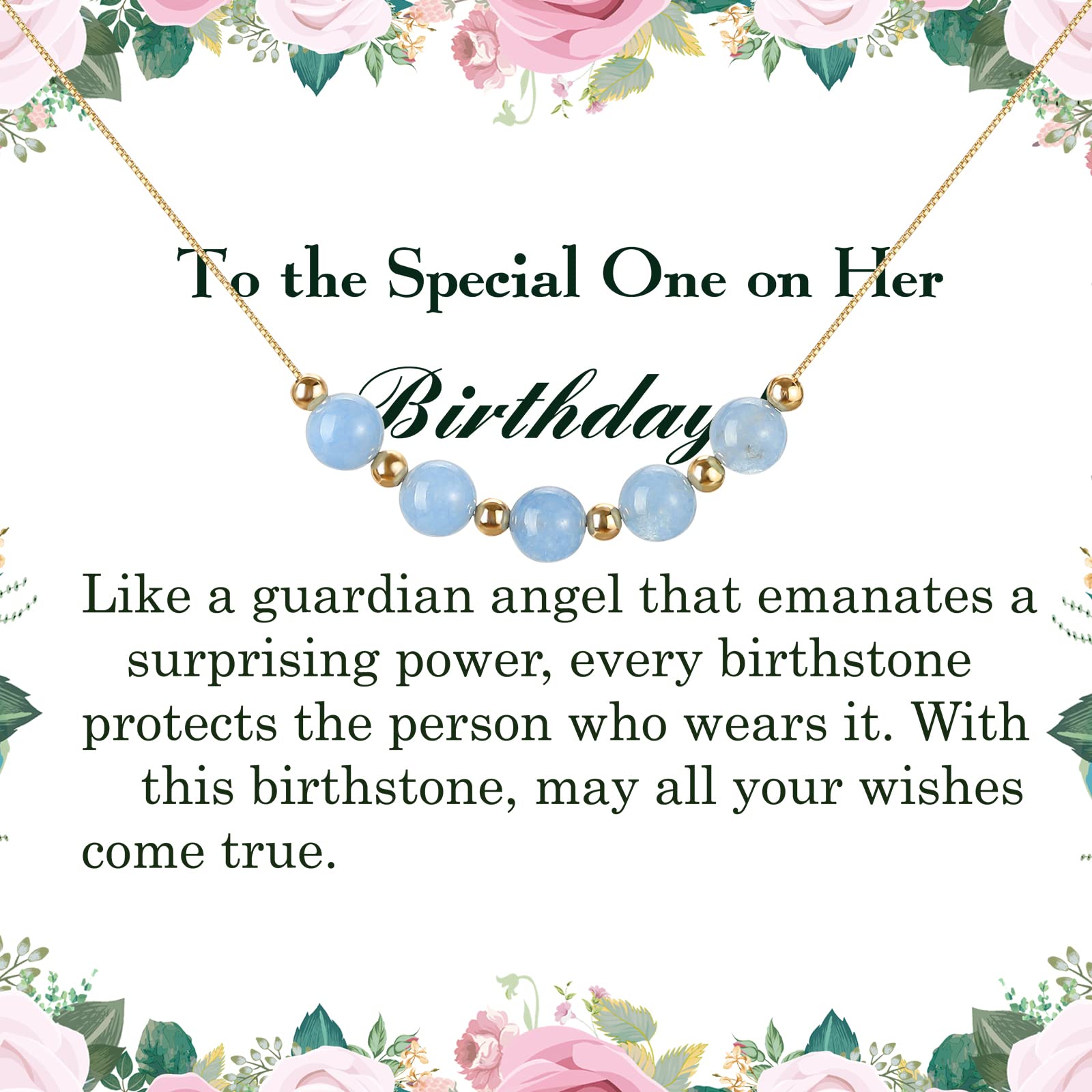 Emibele Birthstone Necklace dla kobiet i dziewcząt to wyjątkowy i piękny dodatek, który z pewnością przyciągnie uwagę każdej kobiety. Ten uroczy naszyjnik z niebieskim kwarcem, pozłacanym urokiem i koralikami jest idealnym prezentem dla osób urodzonych w marcu lub dla tych, którzy po prostu kochają niebieskie kamienie szlachetne.