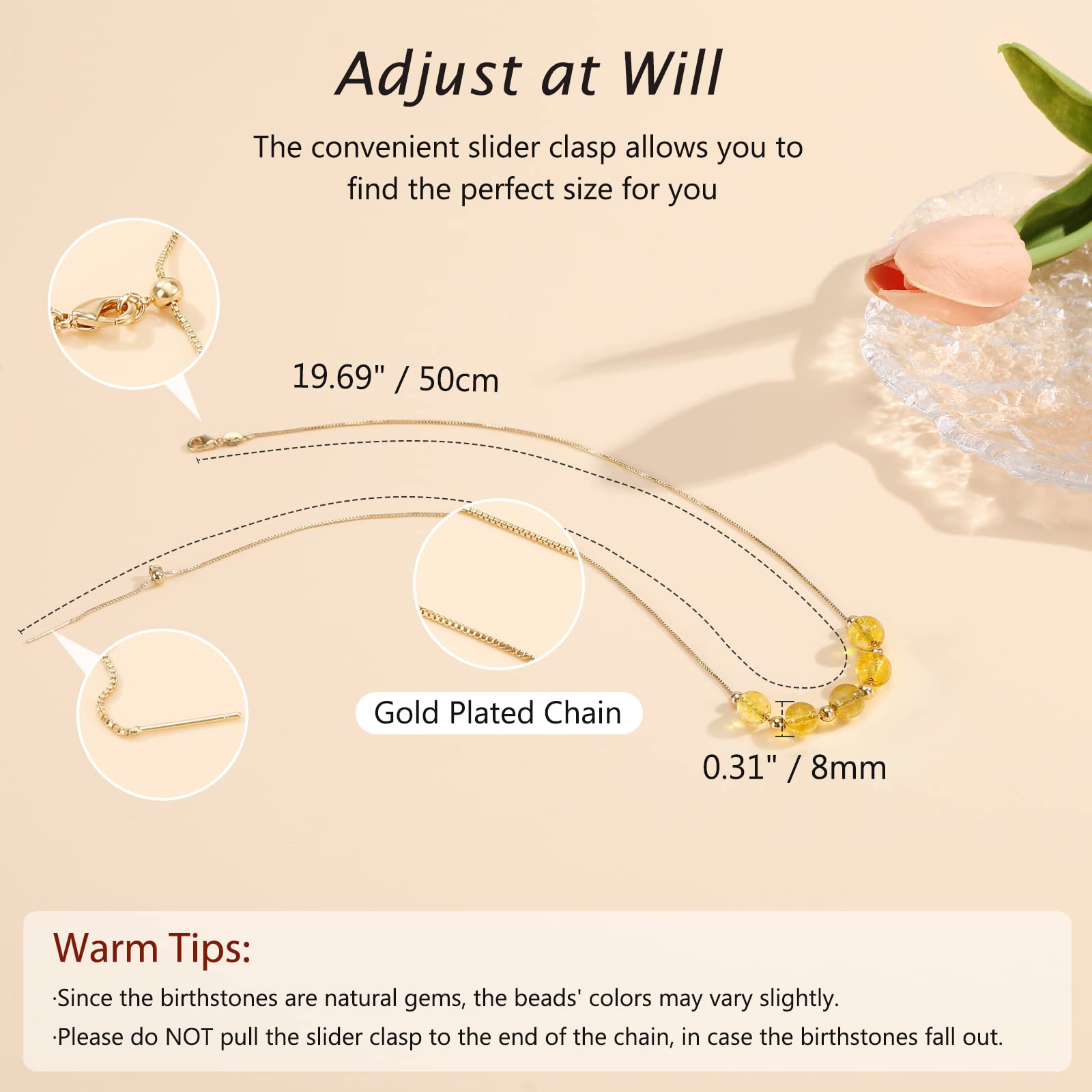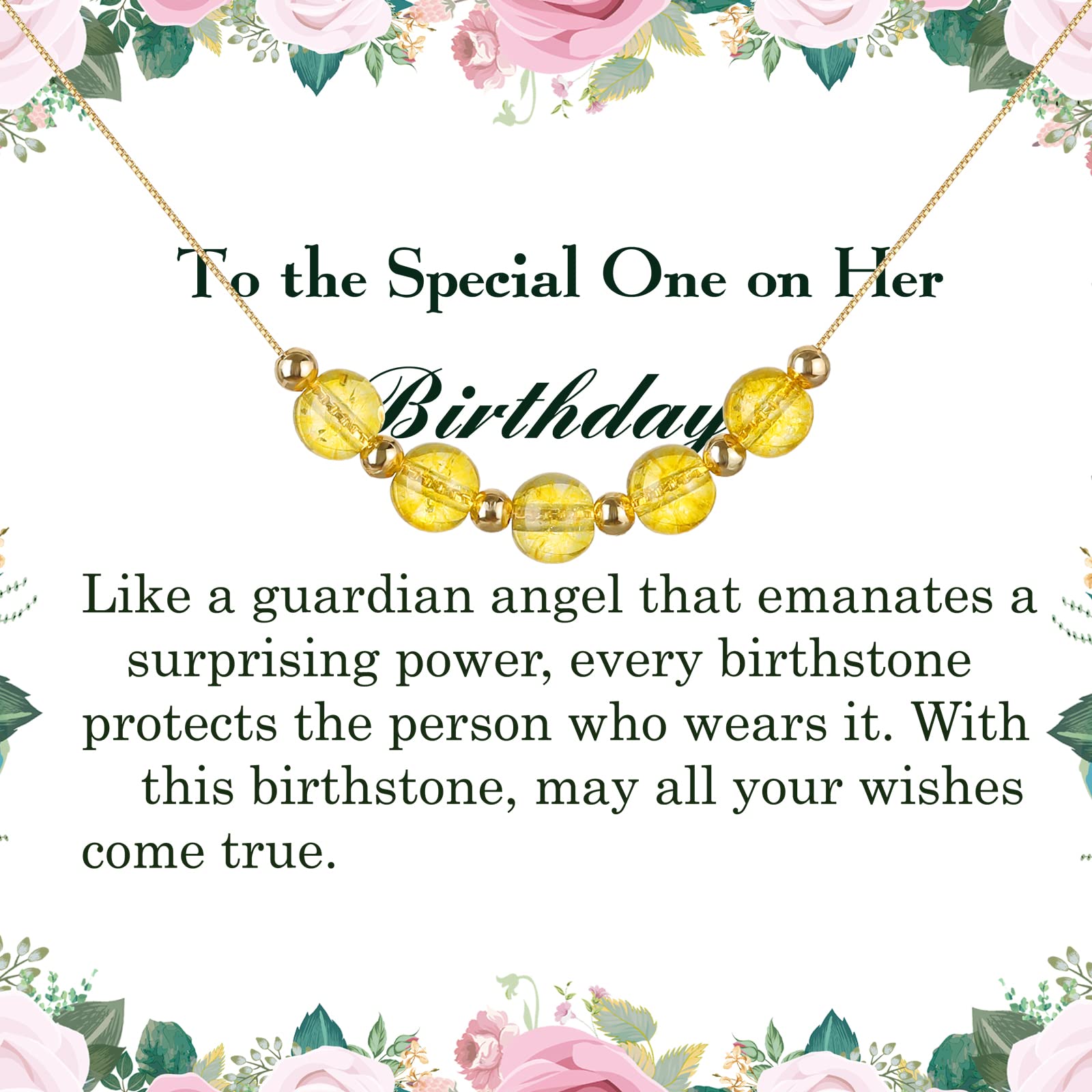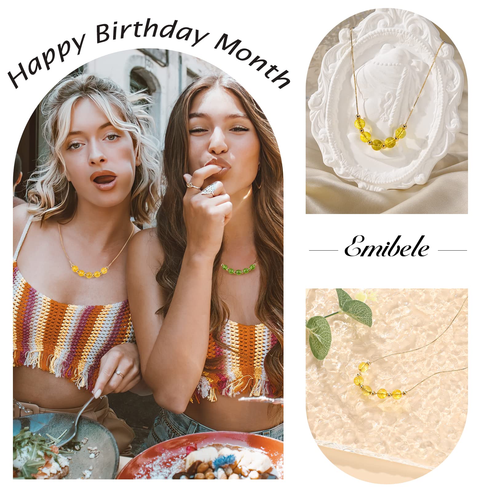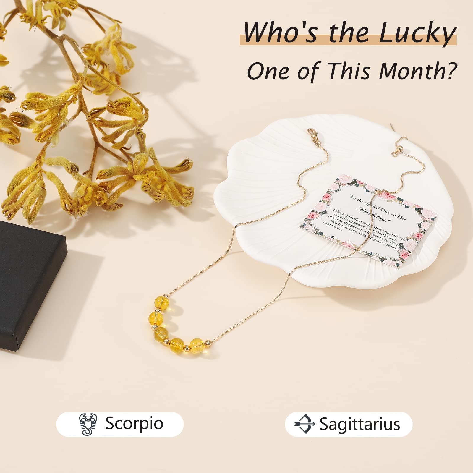 Kolczyk z kamieniem urodzeniowym Emibele dla kobiet i dziewcząt – naszyjnik cytrynowy z pozłacanym urokiem, ozdobiony koralikami, listopadowy kamień urodzenia, biżuteria z kryształów, idealny prezent dla mamy, żony i niej