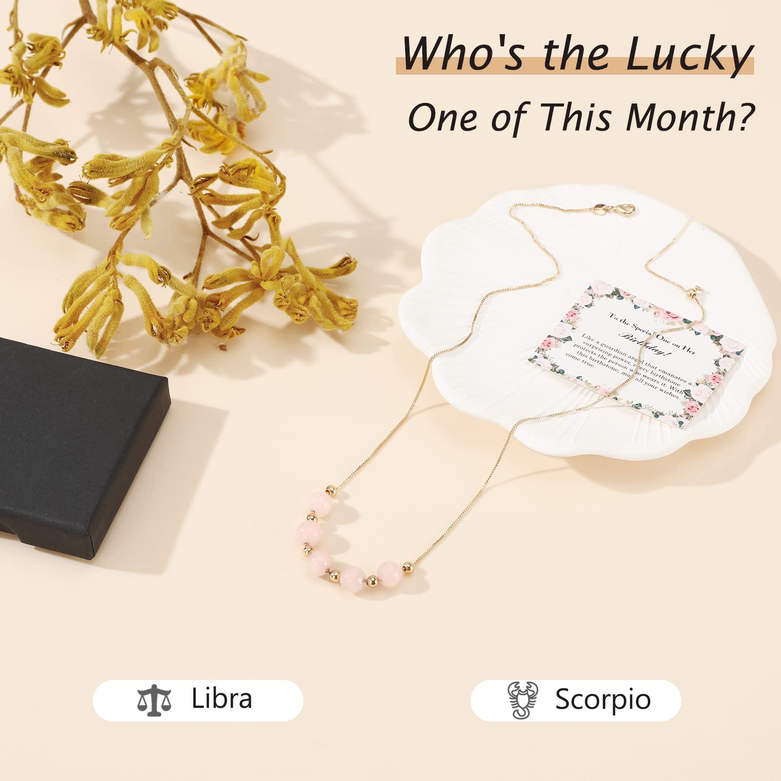 Emibele Birthstone Necklace to wyjątkowy i piękny dodatek, który doskonale nadaje się na prezent dla bliskiej osoby. Ten uroczy naszyjnik z różowym kwarcem, pozłacanym zawieszką i koralikami, jest idealnym wyborem dla kobiet i dziewcząt, które obchodzą swoje urodziny w październiku.