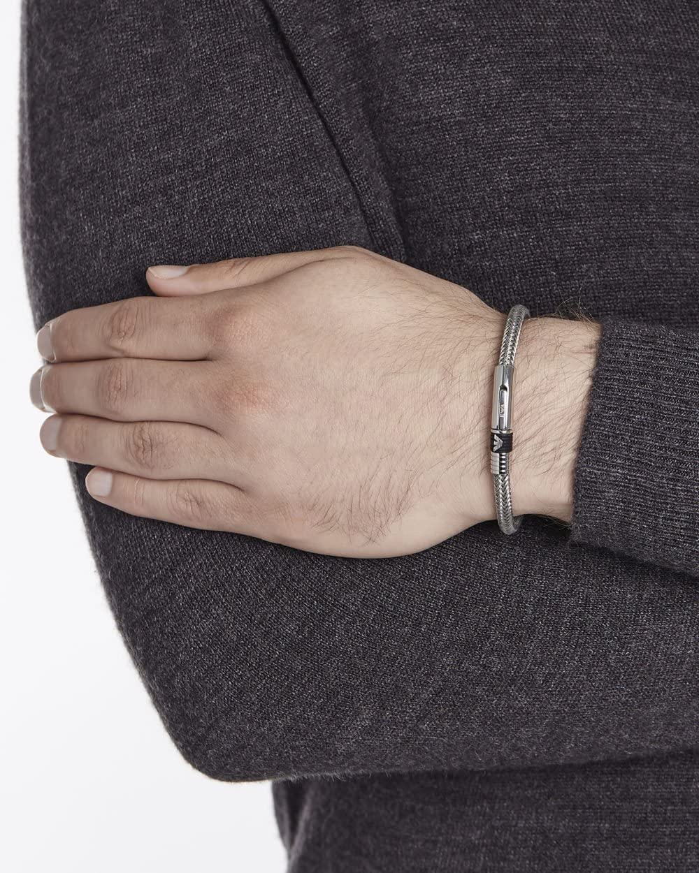Emporio Armani Męska bransoletka ze stali szlachetnej lub skóry z zapięciem pudełkowym i języczkiem