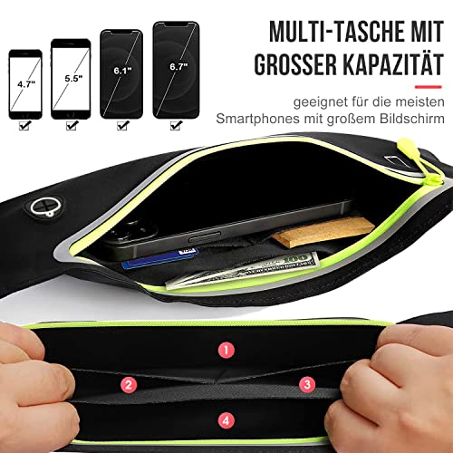 - 【Mehrere Taschen, um den Bildschirm zu schützen】 Die große Tasche kann Ihr Handy und Ihre Brieftasche halten, und das einzigartige kleine Taschendesign kann Ihre Schlüssel, Kreditkarten, Halsketten, Ringe und andere Wertsachen halten, um zu verhindern, dass Ihr Telefonbildschirm zerkratzt wird. Es gibt ein Kopfhörerloch Design auf der Vorderseite des Mobiltelefons Laufgürtel, die Sie Musik während des Trainings genießen können.