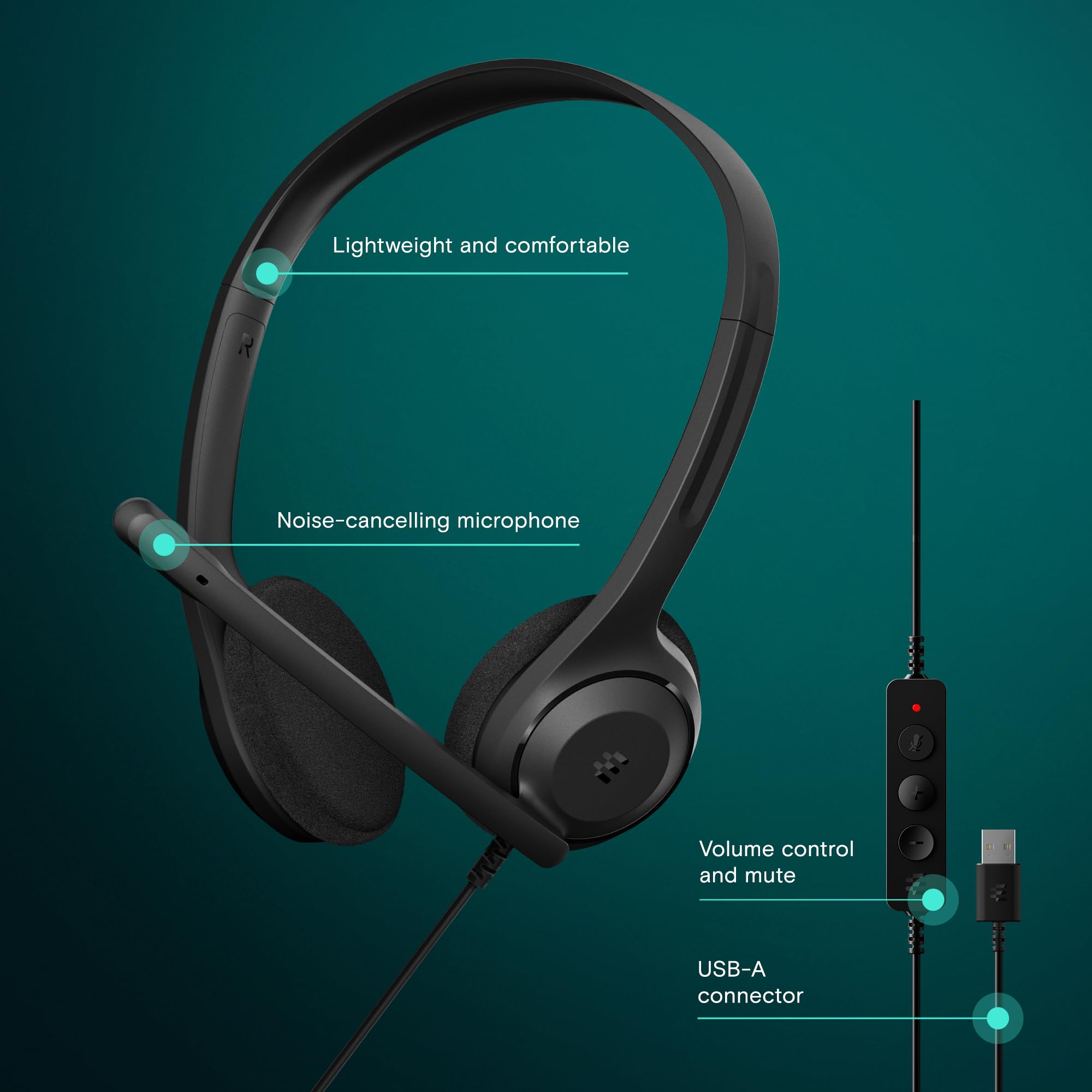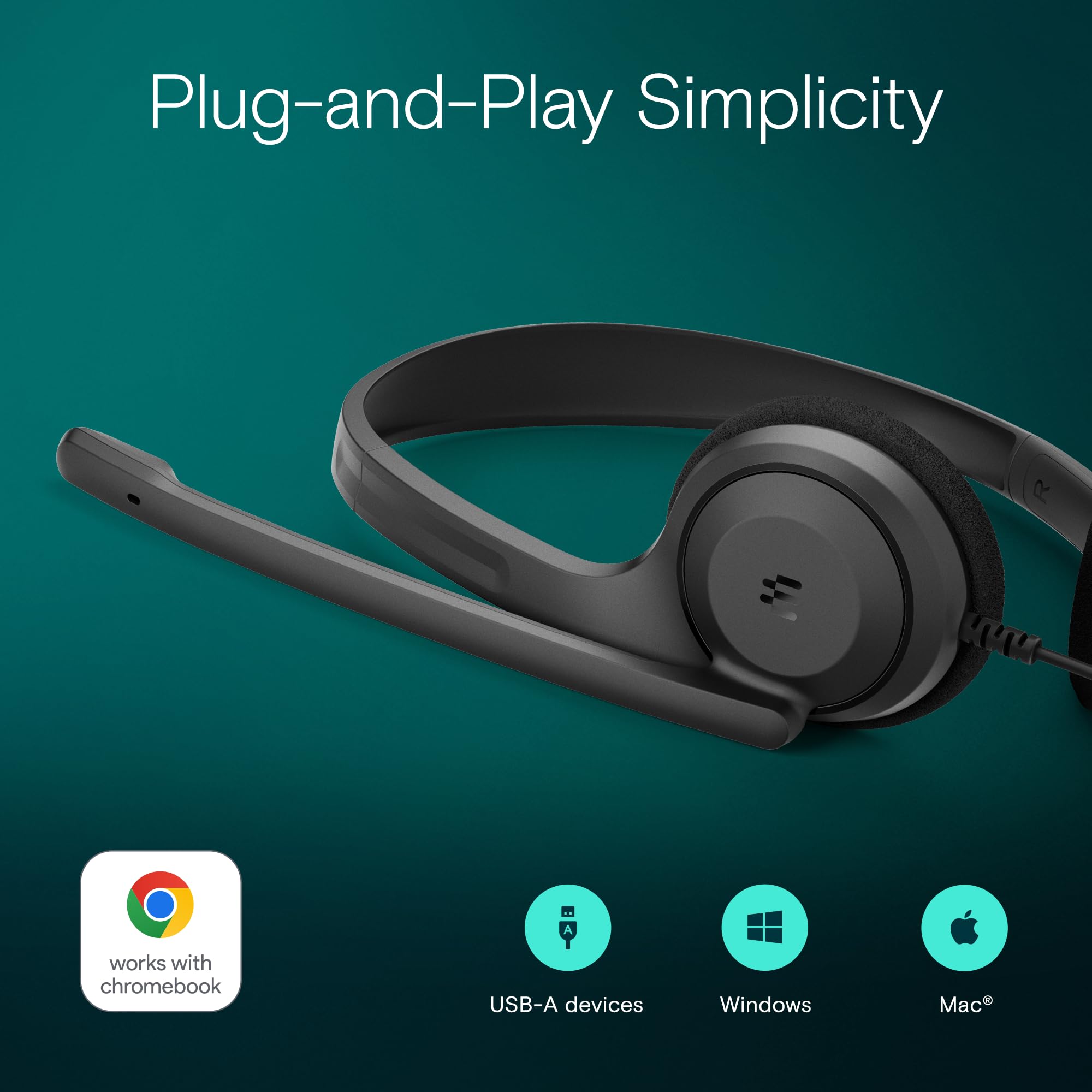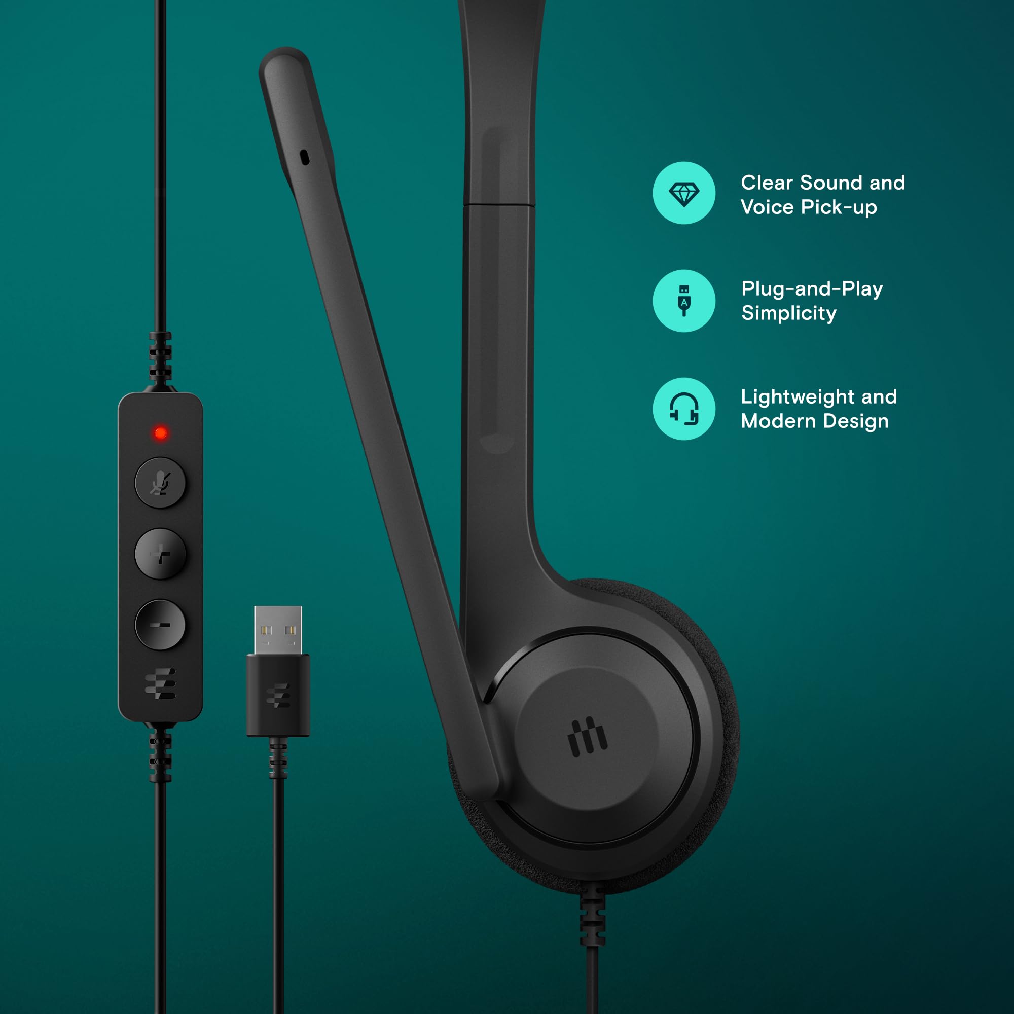 Szeroka kompatybilność dzięki: Szeroka kompatybilność dzięki USB-A – bez problemu połącz zestaw słuchawkowy stereo z komputerem lub laptopem; wytrzymałe i niezawodne rozwiązanie do biura, biura domowego, call center i profesjonalnej komunikacji o wysokiej jakości dźwięku