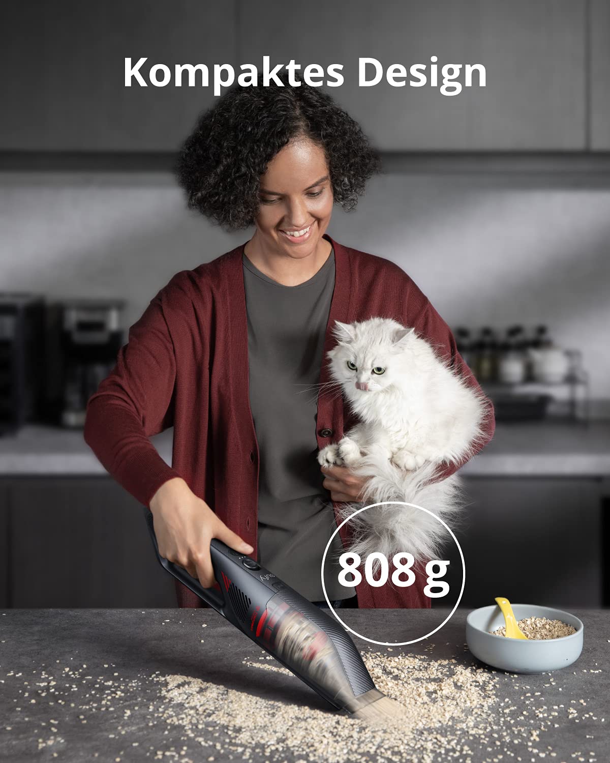 Odkurzacz ma również lekką konstrukcję, ważącą zaledwie 808 gramów. To sprawia, że jest idealny do czyszczenia delikatnych powierzchni i trudno dostępnych miejsc, takich jak otwory wentylacyjne czy szczeliny w kanapie. Nie trzeba się martwić o zarysowania czy uszkodzenia.