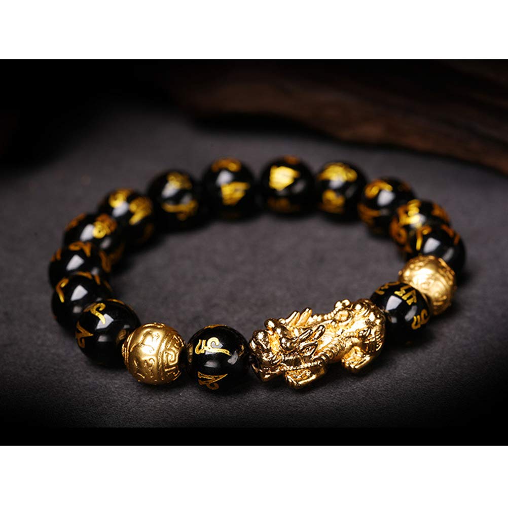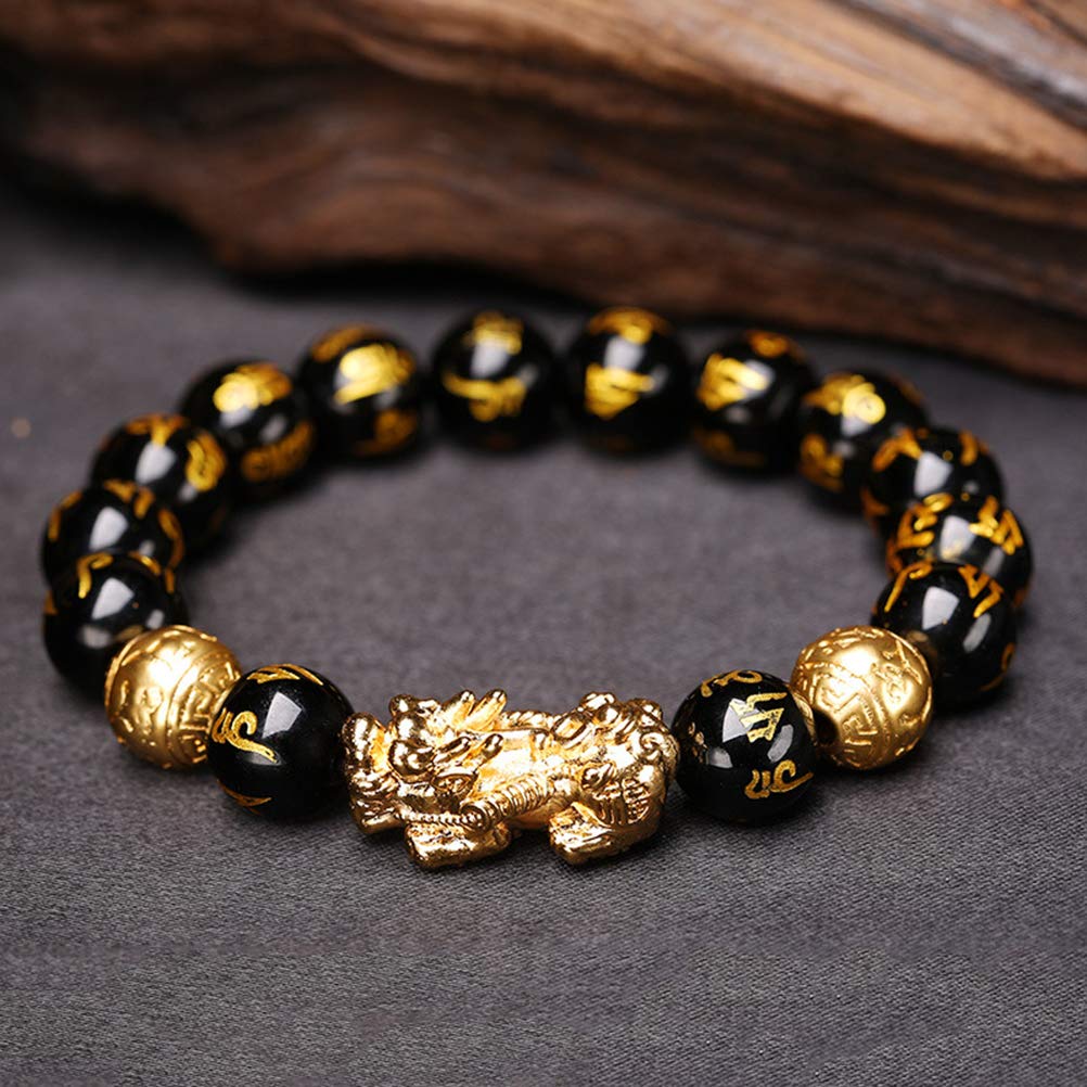 Feng Shui Golden Pi Xiu Lucky bogaty amulet bransoletka, czarna naturalna obsydian bransoletka bogactwo