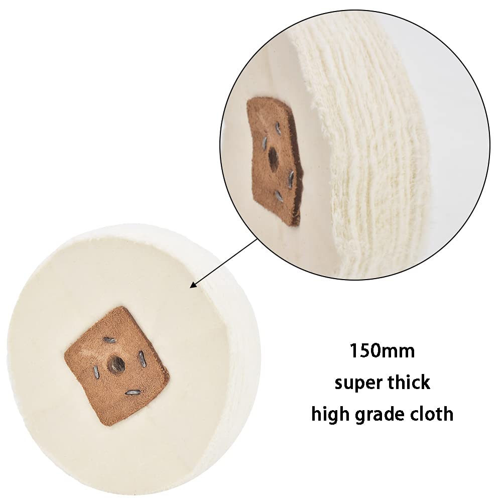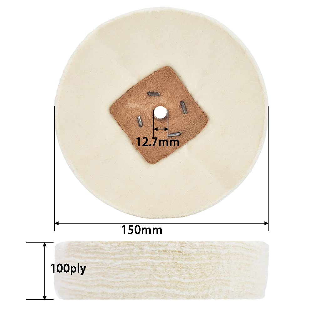 • 【Wymiary】 Średnica: 150 mm, otwór na trzpień: 12,7 mm, grubość: 25,4 mm (100-warstwowa), materiał: bawełna.