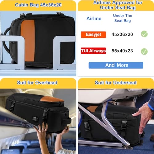 EZUOLA Torby kabinowe 40 x 20 x 25 pod siedzenie do Ryanair 20 l bagaż podręczny torby kabinowe 45 x 36 x 20 cm pod siedzenie do Eeayjet mały plecak podręczny rozmiar kabinowy z portem to idealne rozwiązanie dla podróżujących samolotem. Ta torba kabinowa spełnia wymogi rozmiaru bagażu podręcznego dla linii lotniczych takich jak Easyjet i Ryanair, co oznacza, że nie musisz martwić się o dodatkowe opłaty za nadbagaż.