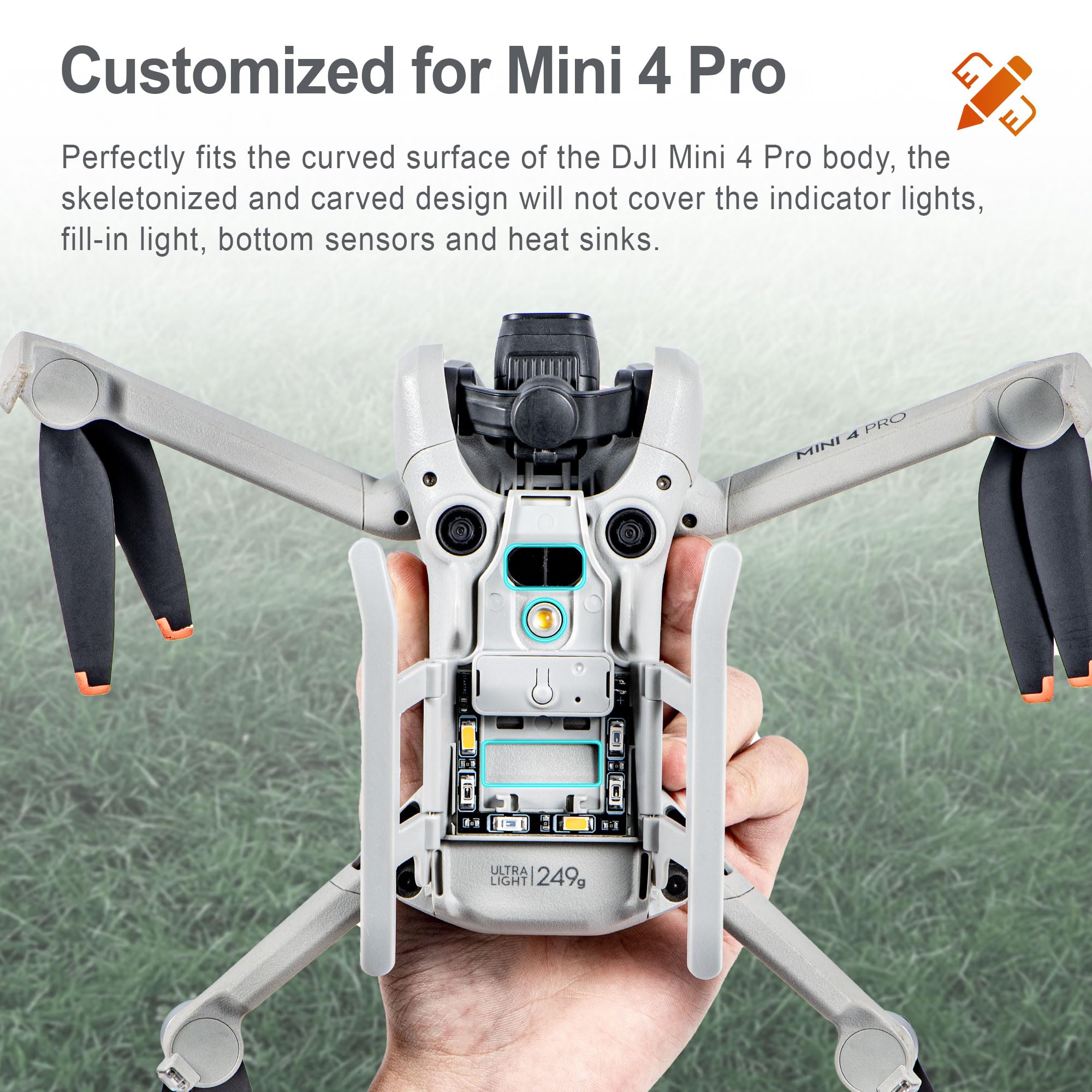 Podwozie do DJI Mini 4 Pro z lampą błyskową LED – Składany zestaw ochraniaczy na nogi – Akcesoria do dronów Craznick – Mini 4 Pro – DJI Mini 4 Pro – Drony