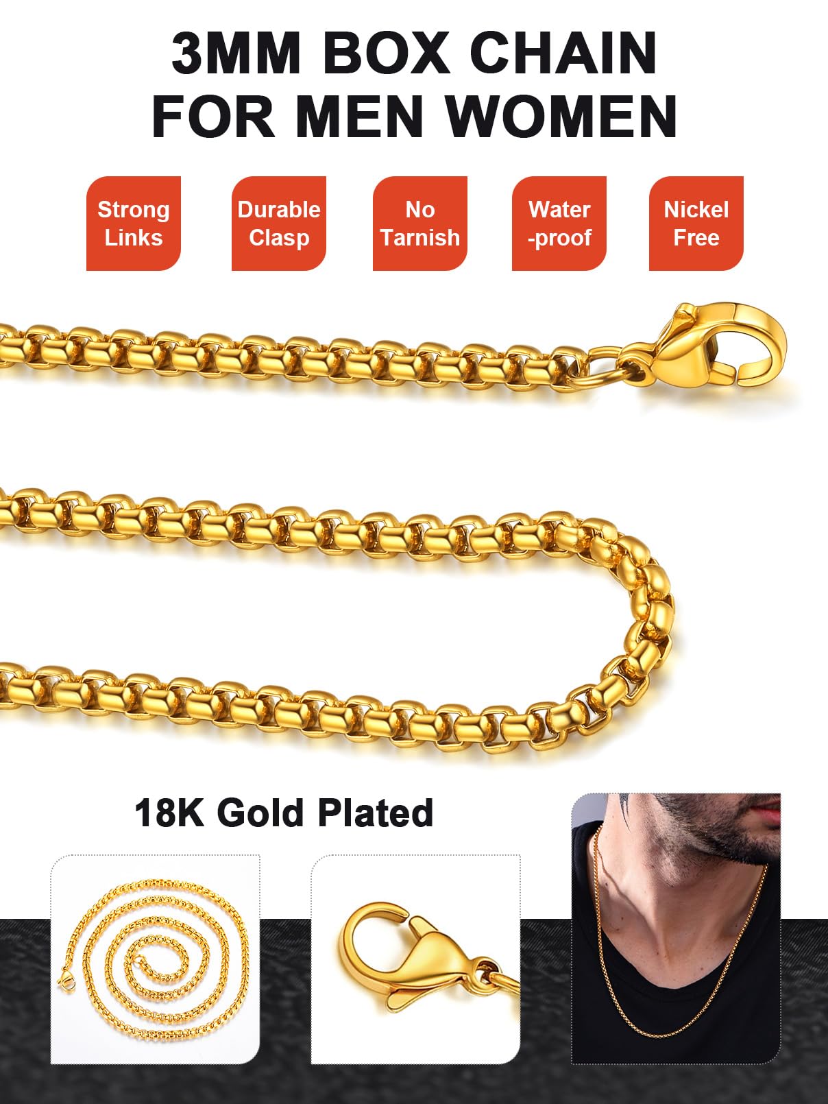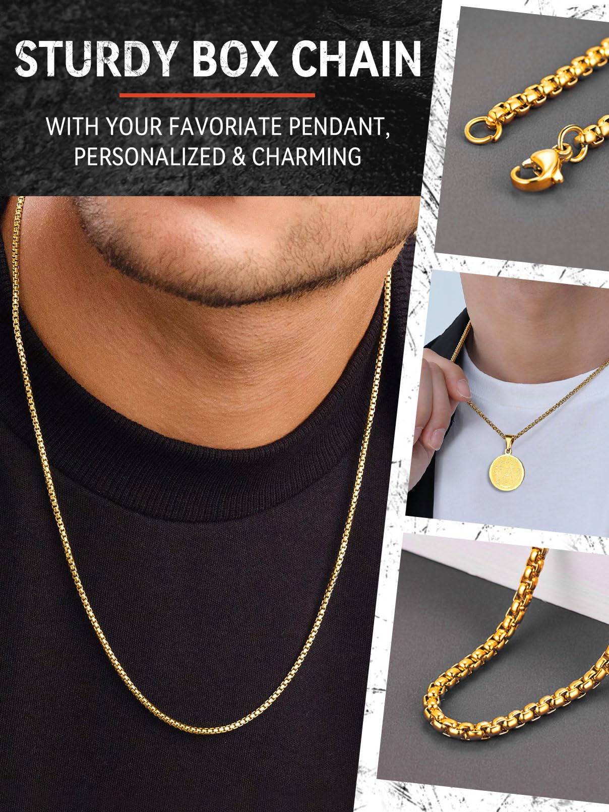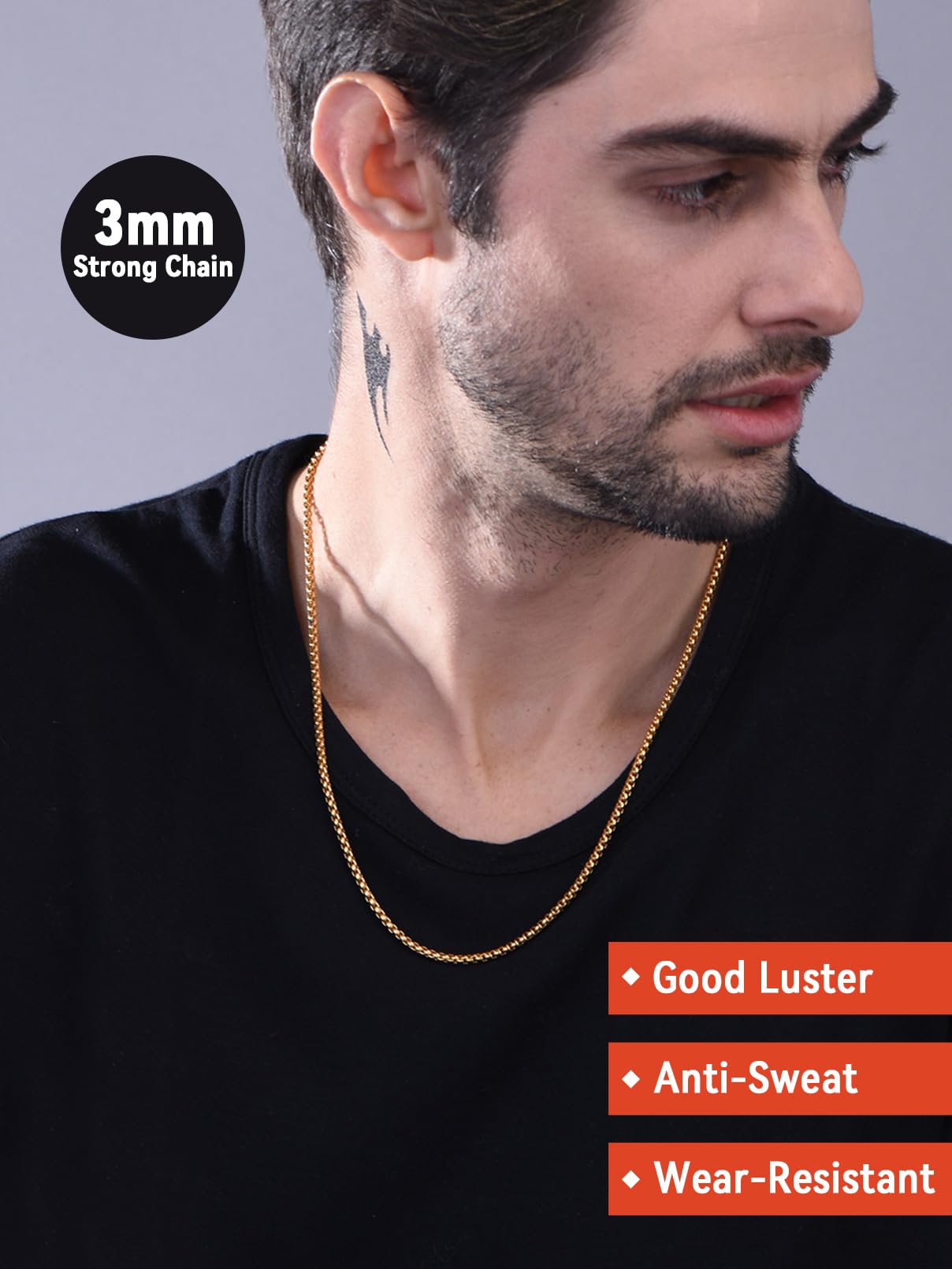 FaithHeart łańcuszek wenecki o szerokości 3-6 mm, męski łańcuszek wenecki, masywny prezent dla mężczyzny/przyjaciela, spersonalizowany prezent dla mężczyzn