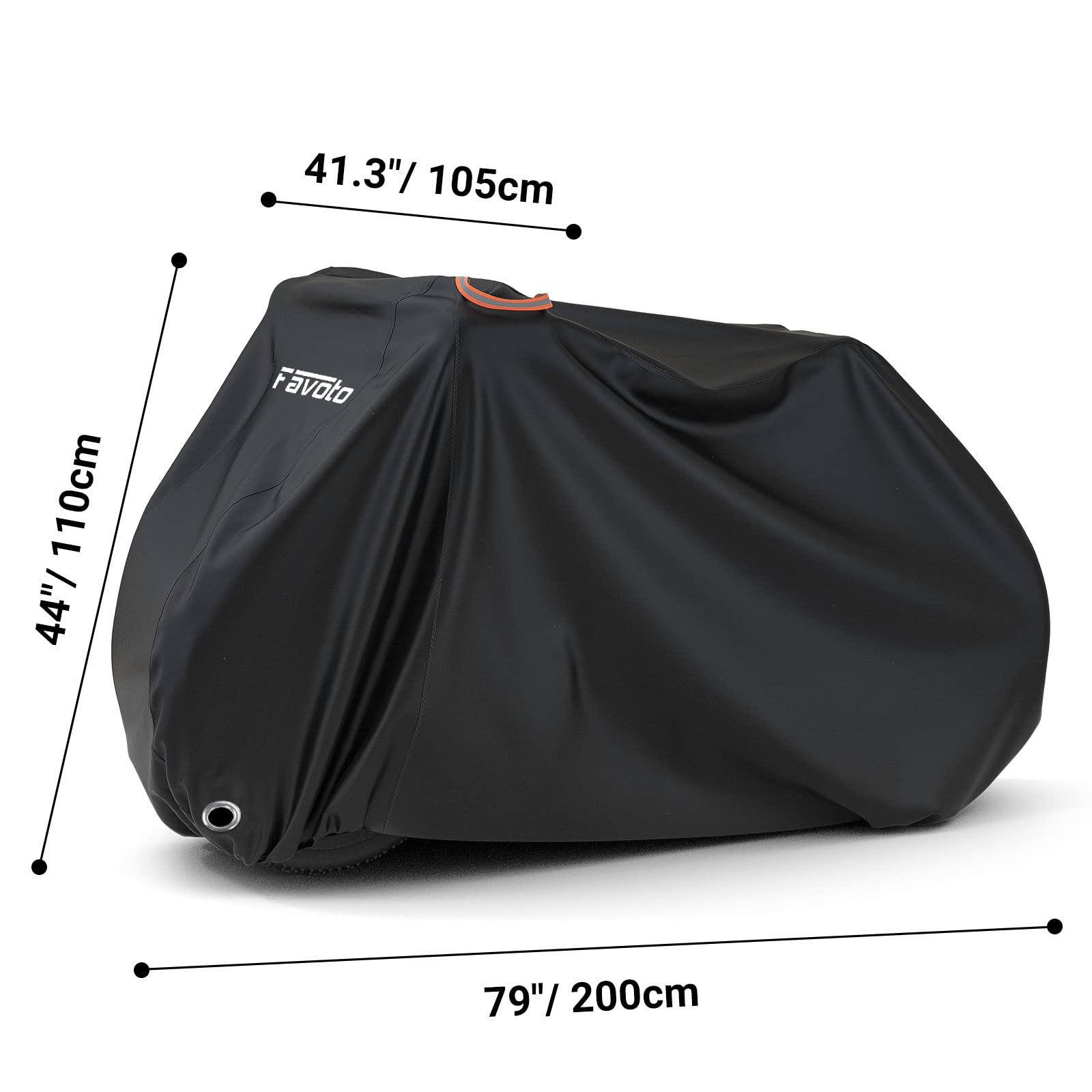 【Pomarańczowe odblaski】 –: 【Pomarańczowe odblaski】 – Nowy pokrowiec rowerowy Favoto jest wyposażony w dwa pomarańczowe odblaski w postaci uchwytów, które służą jako źródło światła w nocy i sprawiają, że rower jest bardziej widoczny. Dodatkowo pokrowiec na rower można łatwo rozłożyć, a także złożyć. Gdy nie jest używany, możes