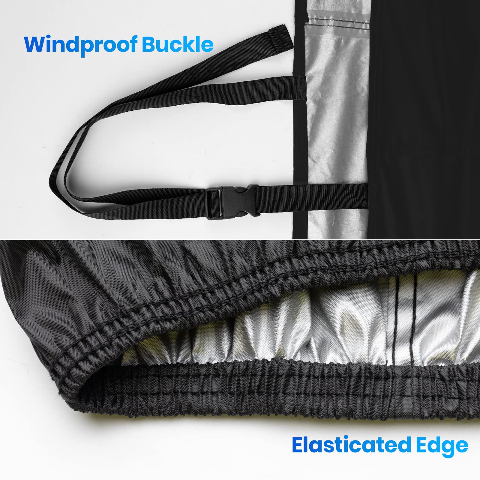 【Solidny i wiatroszczelny】: 【Solidny i wiatroszczelny】 – Nowy pokrowiec rowerowy Favoto jest wykonany z wytrzymałej tkaniny i ma wodoodporne paski na każdym szwie. Dzięki elastycznej taśmie u dołu i dwóm regulowanym paskom mocującym z zatrzaskami, Twój rower będzie idealnie chroniony przed wiatrem i innymi warunkami pogodowymi
