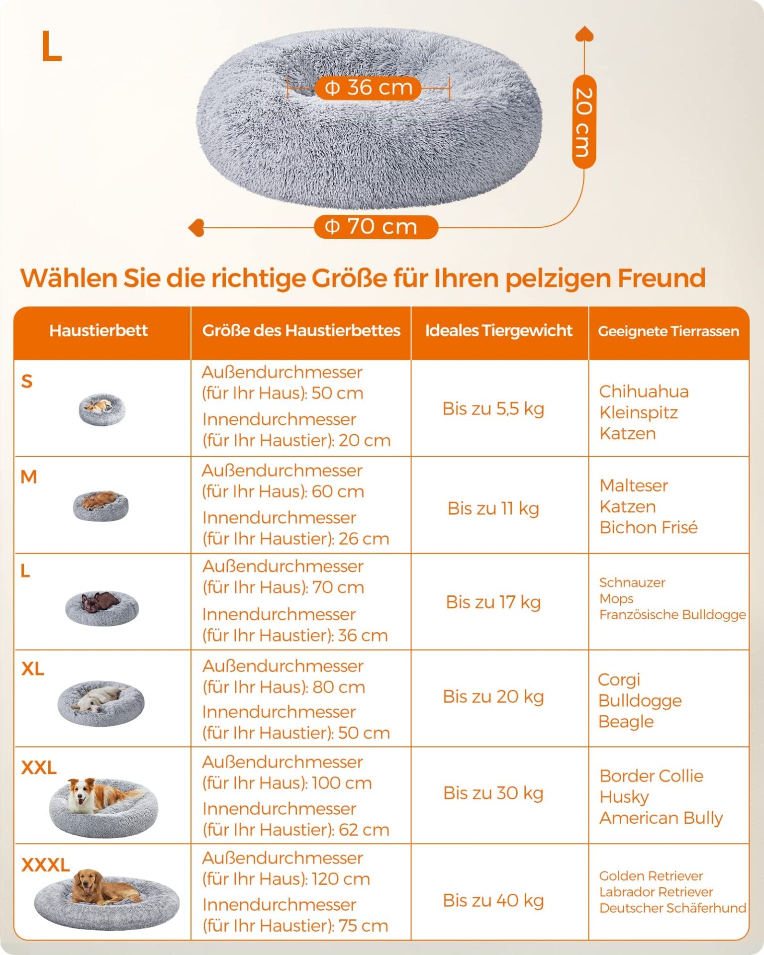 • [Wskazówki dotyczące rozmiaru i użytkowania] Legowisko dla psa ma wymiary 70 x 20 cm (średnica x wys.) i jest idealne dla małych i średnich psów o wadze do 17 kg. Zmierz i zważ swojego zwierzaka wcześniej. Wstrząsnąć i spulchnić przed użyciem, aby uzyskać pełny rozmiar
