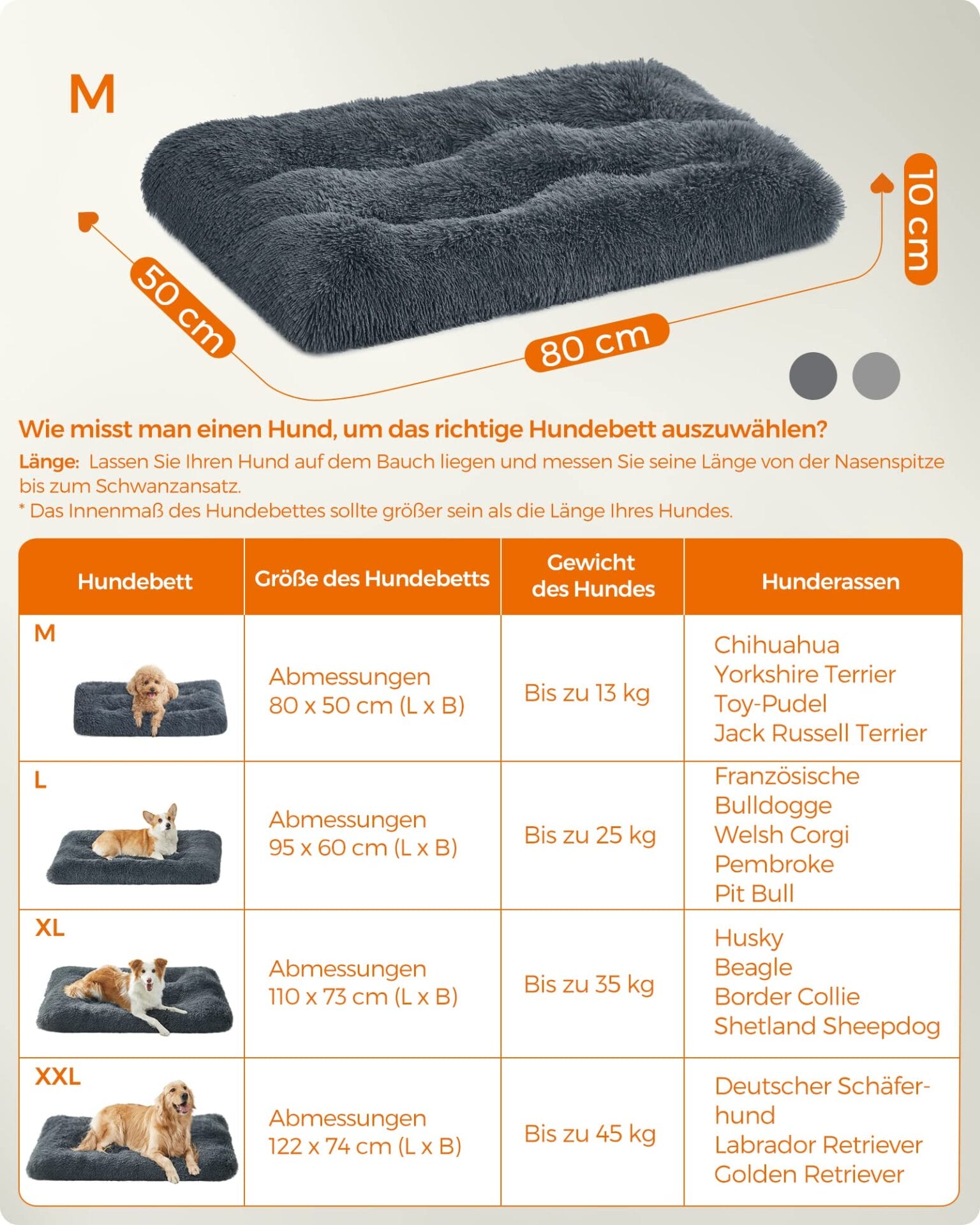 • [Puszysty, wygodny, dobry sen] Dzięki miękkiej wyściółce PP owiniętej w puszystą pluszową legowisko dla psa o grubości 10 cm zapewnia czworonożnemu przyjacielowi wygodną strefę do spania, bez walki z tobą o sofę