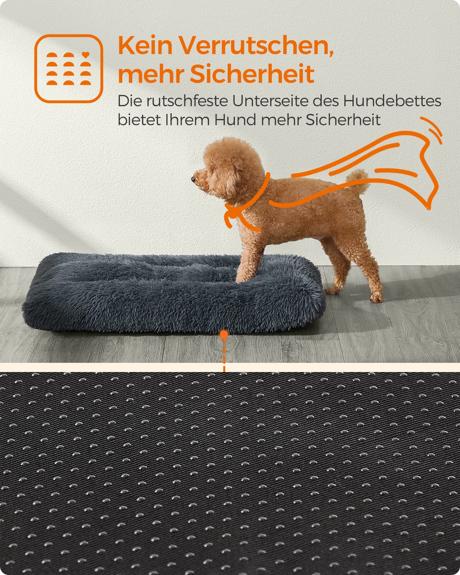 • [Antypoślizgowe dno] Na dole maty dla psa znajdują się antypoślizgowe gumowe punkty, które zapobiegają ślizganiu się i sprawiają, że jest bezpieczny zarówno dla starszych psów, jak i bardziej żywych szczeniąt