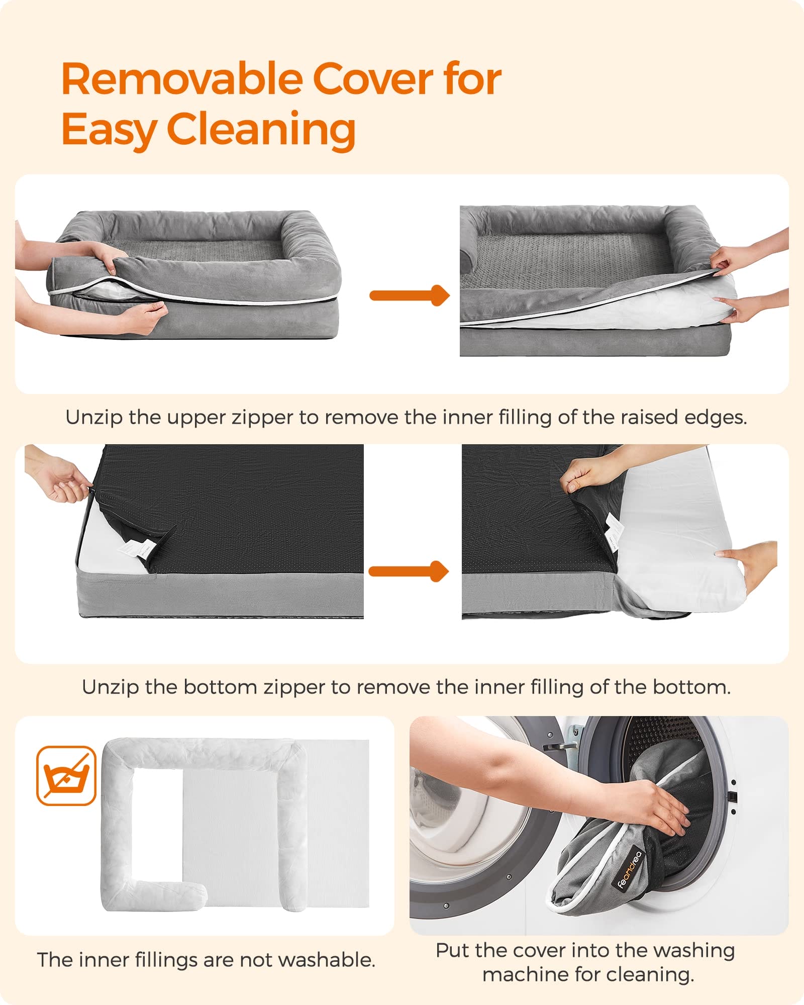 • Zdejmowana pokrywa, łatwe czyszczenie: Otwórz dwa zamki błyskawiczne, wyjmij wyściółkę, wypierz pokrowiec, aby usunąć brud i zapachy oraz zapewnić czystość. Oszczędza to wiele wysiłku przy sprzątaniu