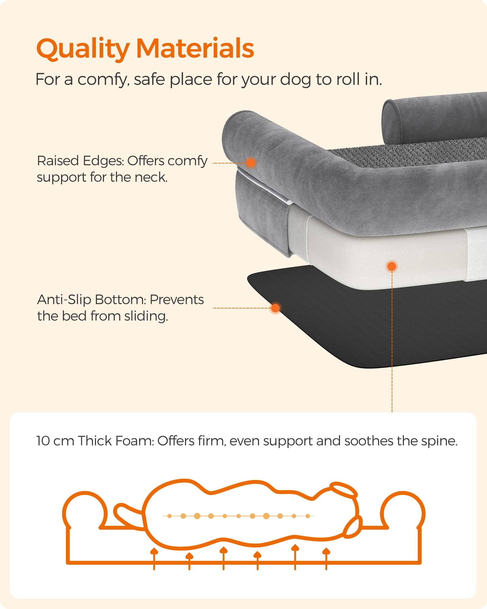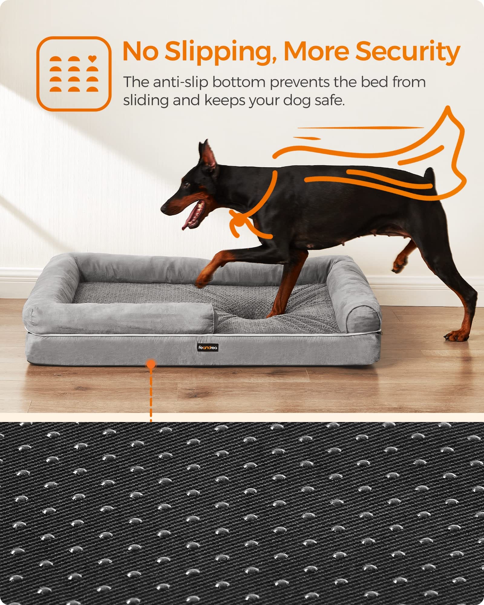 • Antypoślizgowy spód: Aby zapobiec mimowolnemu przesuwaniu się Twojego futrzanego przyjaciela po salonie, ta sofa dla psa jest wyposażona w antypoślizgowy spód, aby czuł się bezpiecznie podczas wchodzenia i schodzenia z łóżka