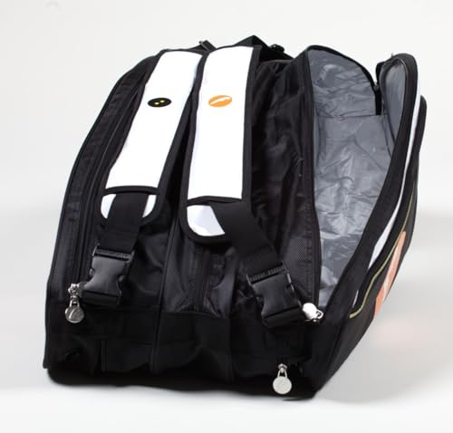 Dzięki swojej pojemności na 9 rakiet, torba Racketbag pozwala na przechowywanie wszystkich niezbędnych akcesoriów do gry. Dodatkowe kieszenie zapewniają miejsce na buty, ubrania, akcesoria do pielęgnacji rakiet oraz inne drobiazgi. Dzięki temu wszystko, czego potrzebujesz na korcie, znajduje się w jednym miejscu, co sprawia, że jesteś zawsze gotowy do gry.