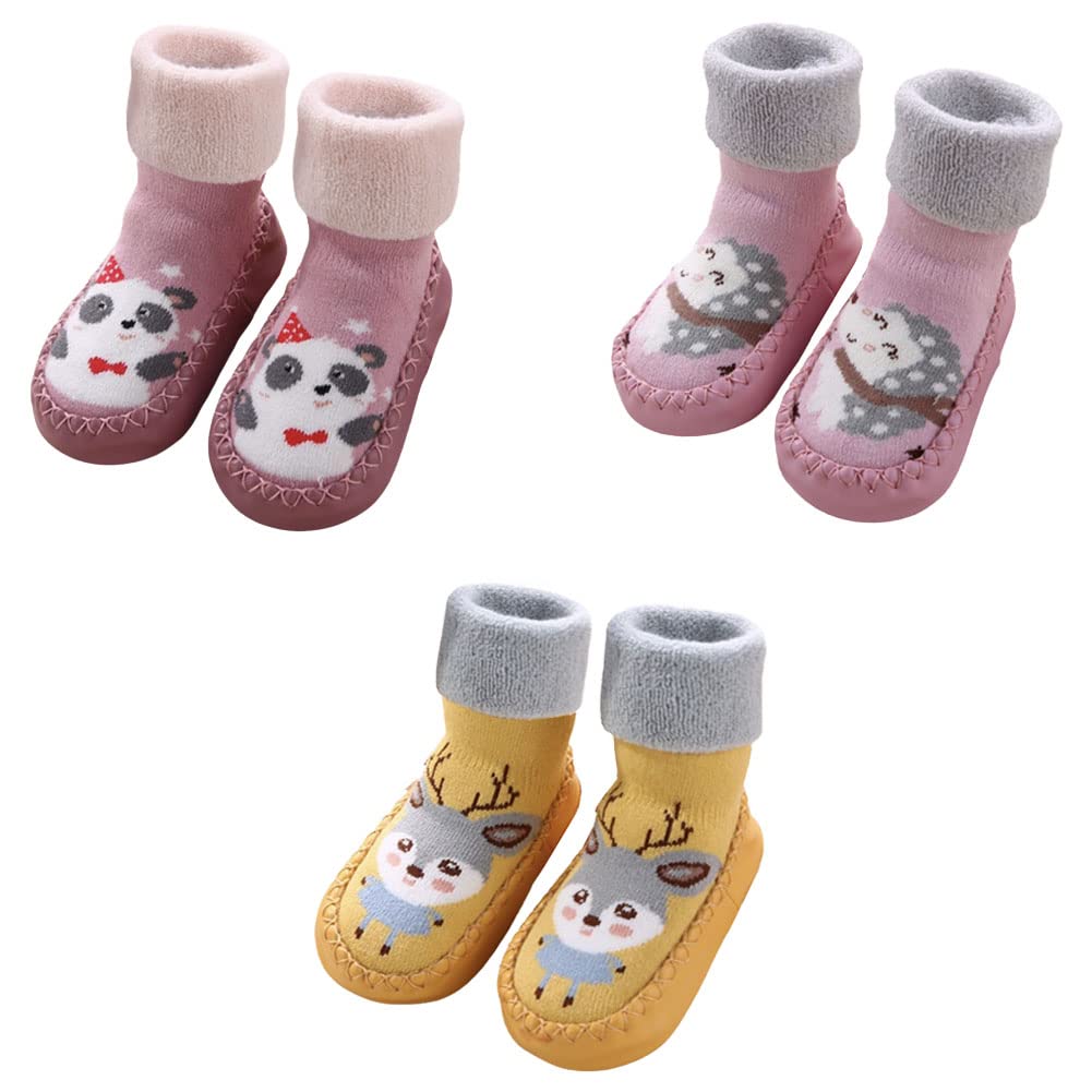 3-Pak Buty skarpety dla niemowląt antypoślizgowe kapcie niemowlęce na zimę Buty do nauki chodzenia