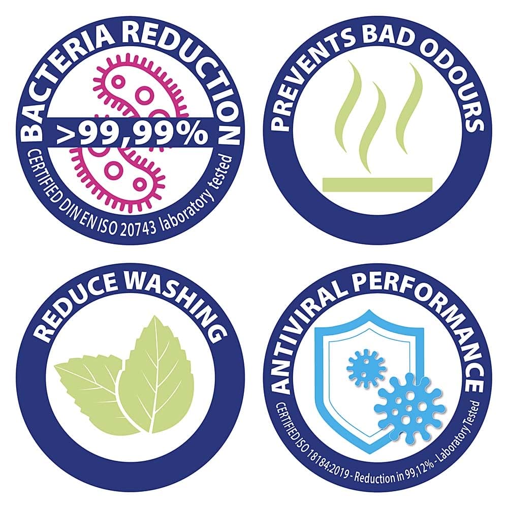 • Higiena przez cały czas, zatrzymuje nieprzyjemne zapachy: zabieg zapewnia higienę i świeżość oraz zapobiega powstawaniu nieprzyjemnych zapachów. Działanie utrzymuje się również z biegiem czasu i przy intensywnym użytkowaniu