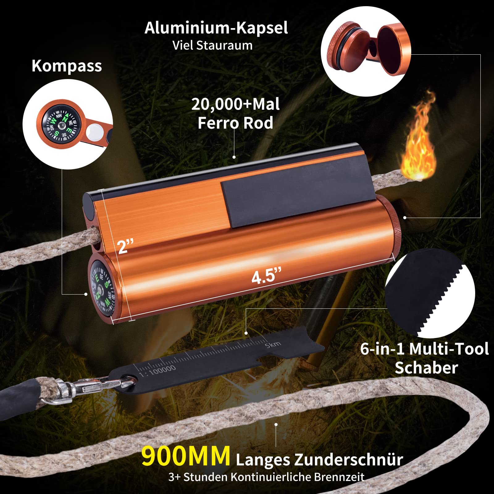 Krzesiwo 7 w 1 XL to niezastąpiony zestaw survivalowy, który wyróżnia się na tle konkurencji dzięki swojej wszechstronności i wysokiej jakości wykonania. W skład zestawu wchodzi krzesiwo magnezowe, które umożliwia ponad 20 000 zapłonów, co czyni je niezwykle trwałym i ekonomicznym rozwiązaniem dla każdego miłośnika przygód na świeżym powietrzu.