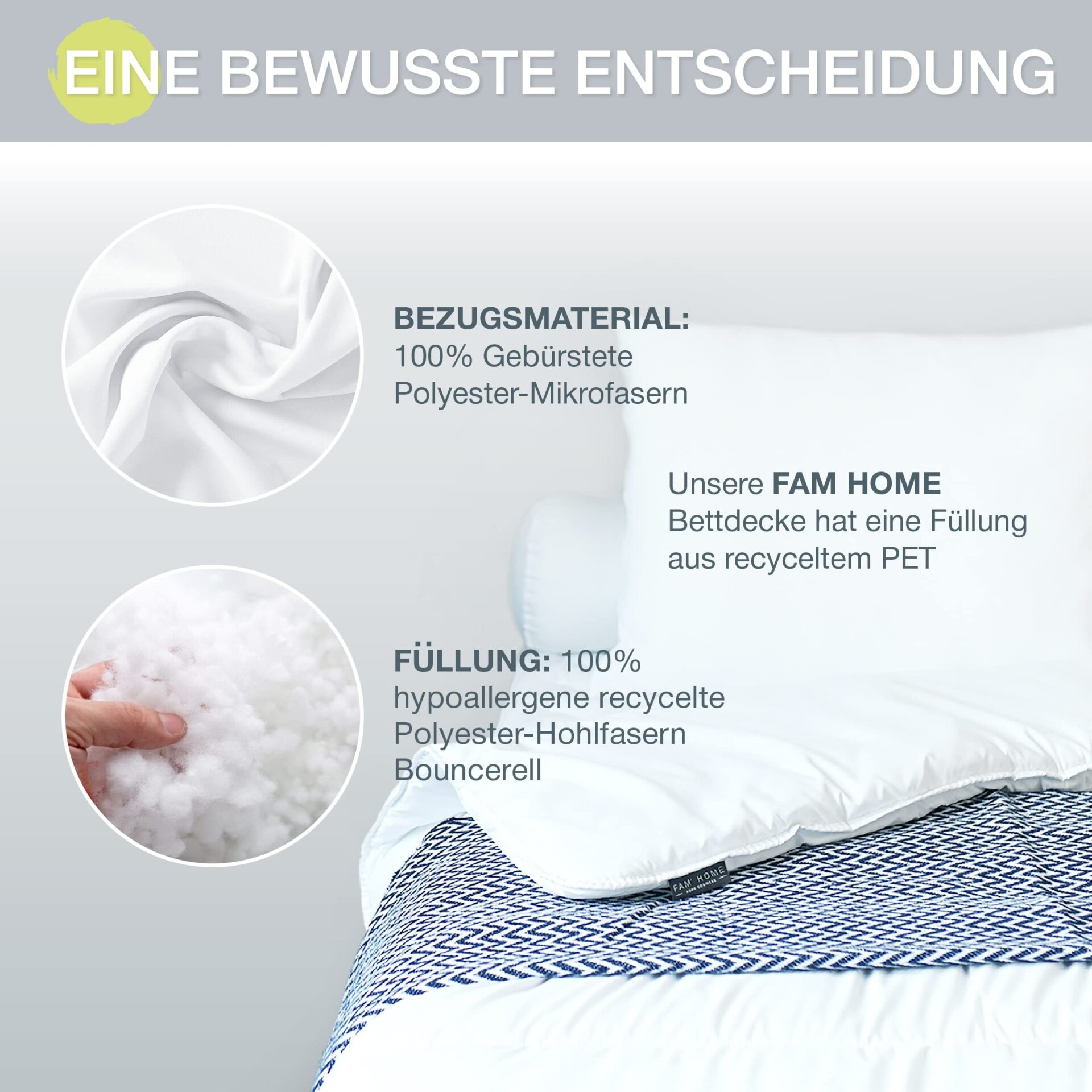 Kołdra Fam Home 135×200 cm MADE IN GREEN – Hipoalergiczna, Pikowana, Miękka, Wytrzymała, 350g/m2