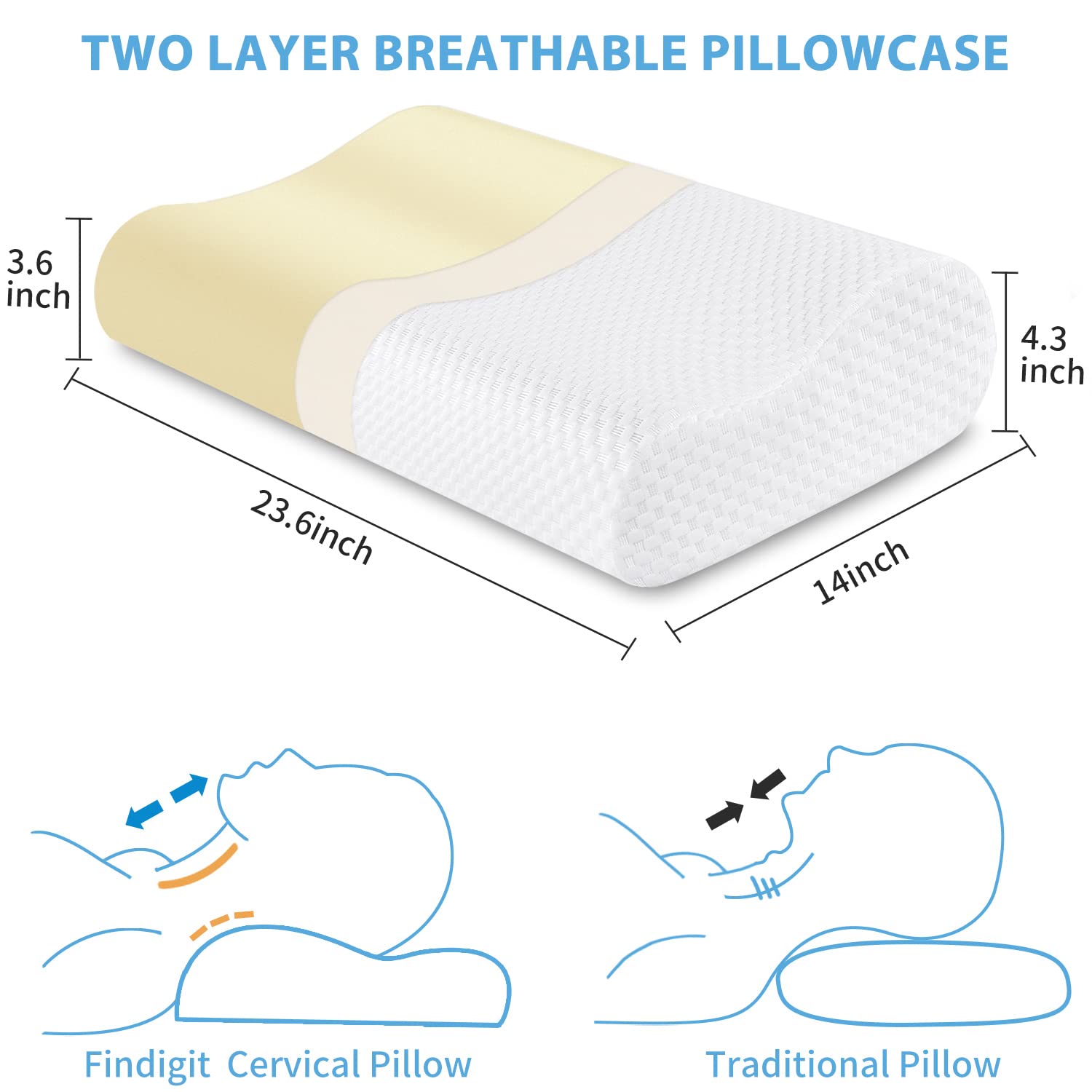 Findigit Poduszka ortopedyczna poduszka z pianki z pamięcią kształtu ergonomiczna poduszka podpierająca kark na boki plecy i brzuch 60 x 35 x 11/9 cm