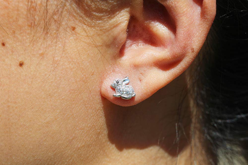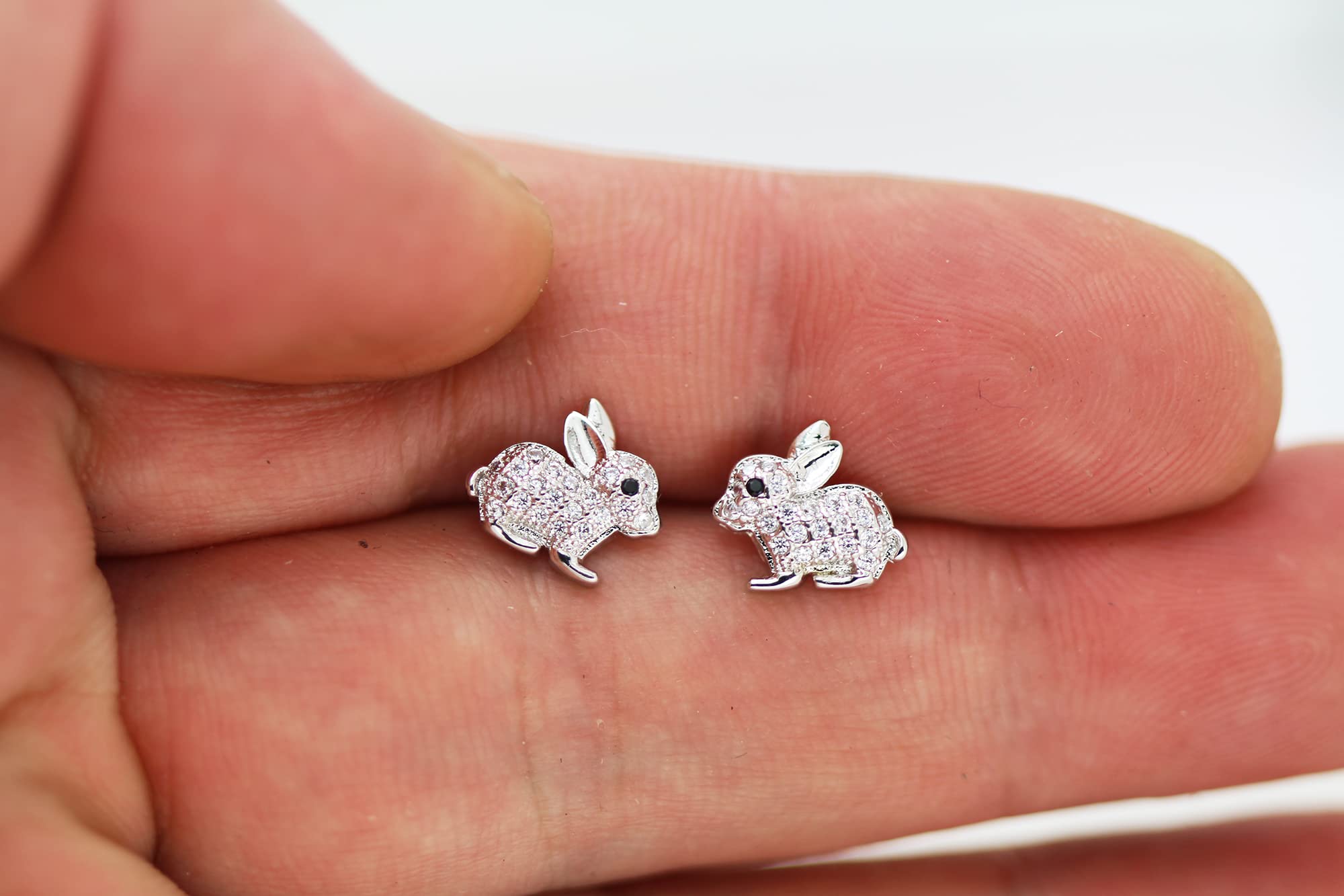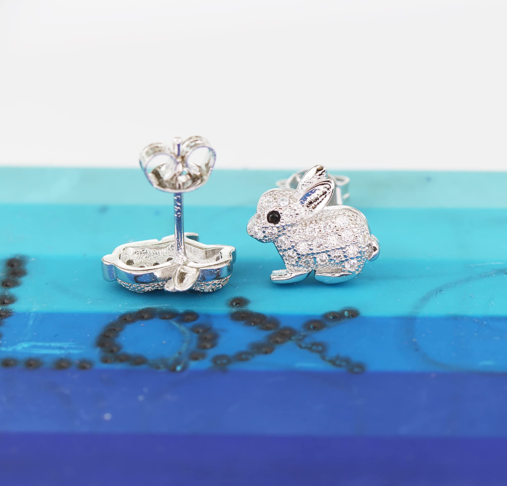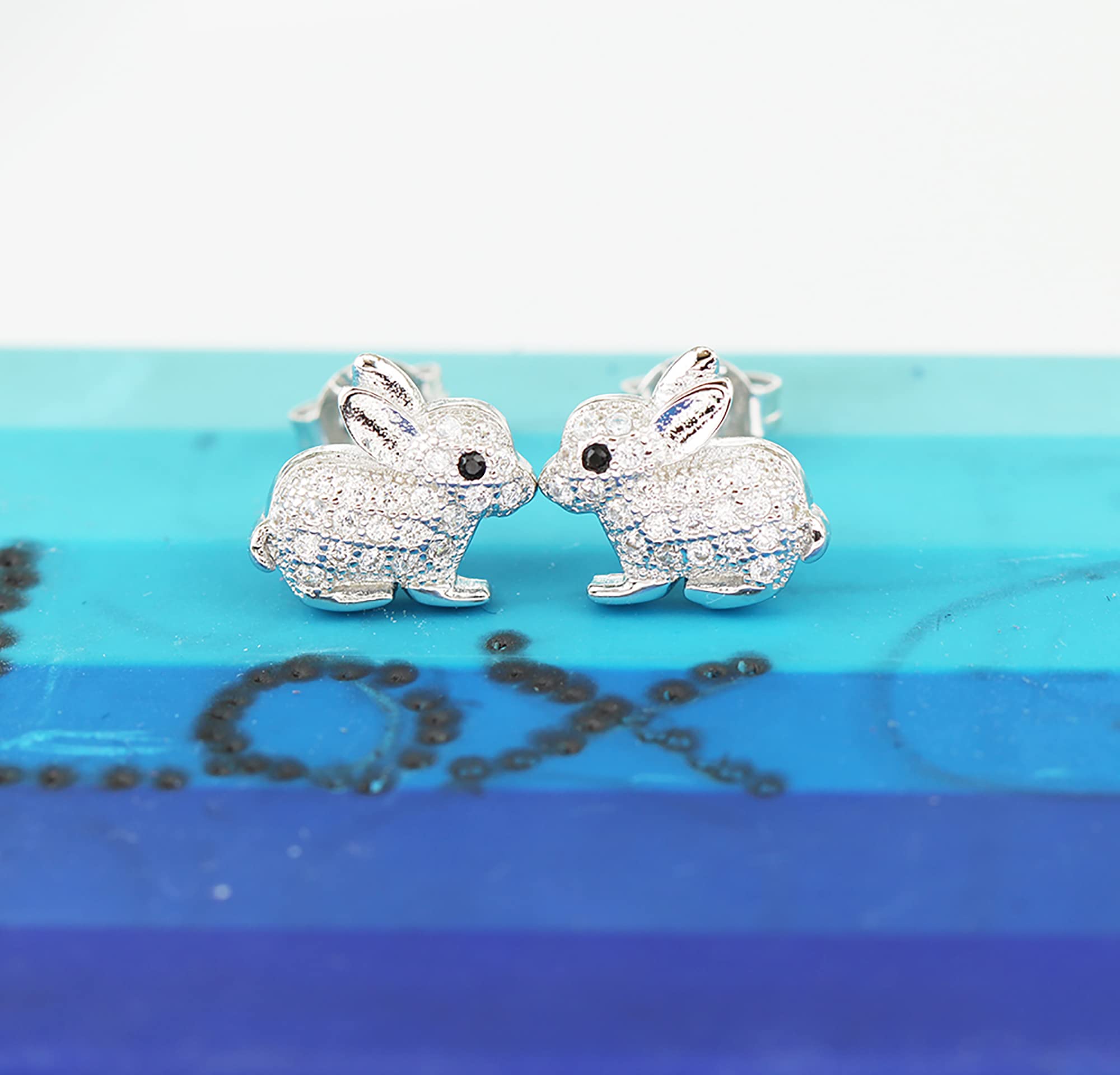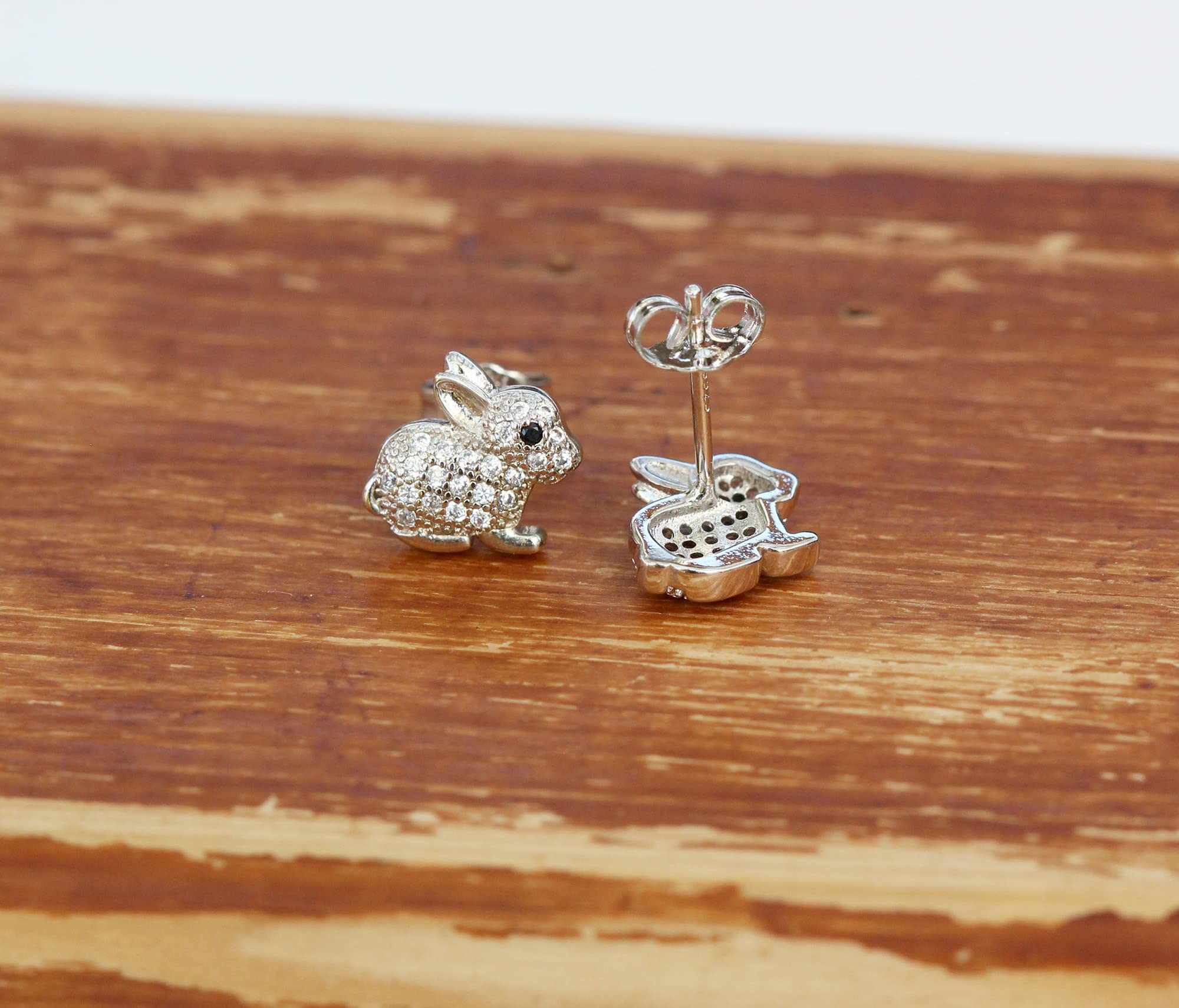 Srebrne kolczyki sztyfty z cyrkoniami – urocze króliczki dla kobiet i dziewcząt
