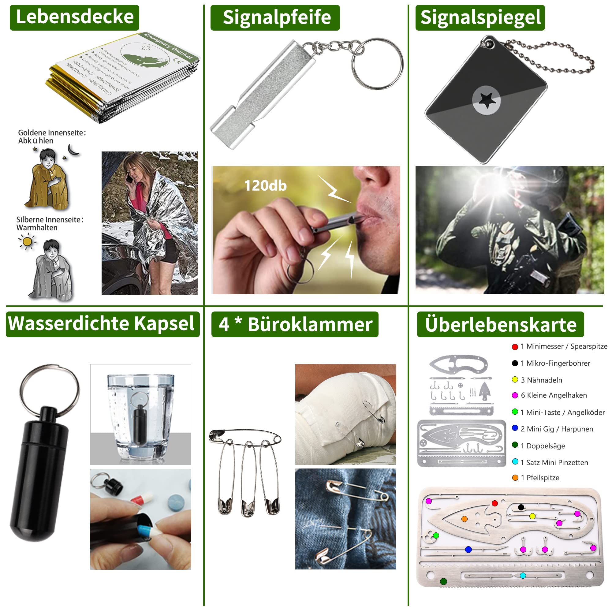 FINIBO Zestaw survivalowy 21 w 1 to must-have dla każdego entuzjasty outdooru, który ceni sobie jakość, funkcjonalność i bezpieczeństwo. Dzięki temu zestawowi, każda wyprawa stanie się bardziej komfortowa i bezpieczna, a Ty będziesz gotowy na wszelkie wyzwania, jakie mogą Cię spotkać w dzikiej naturze.