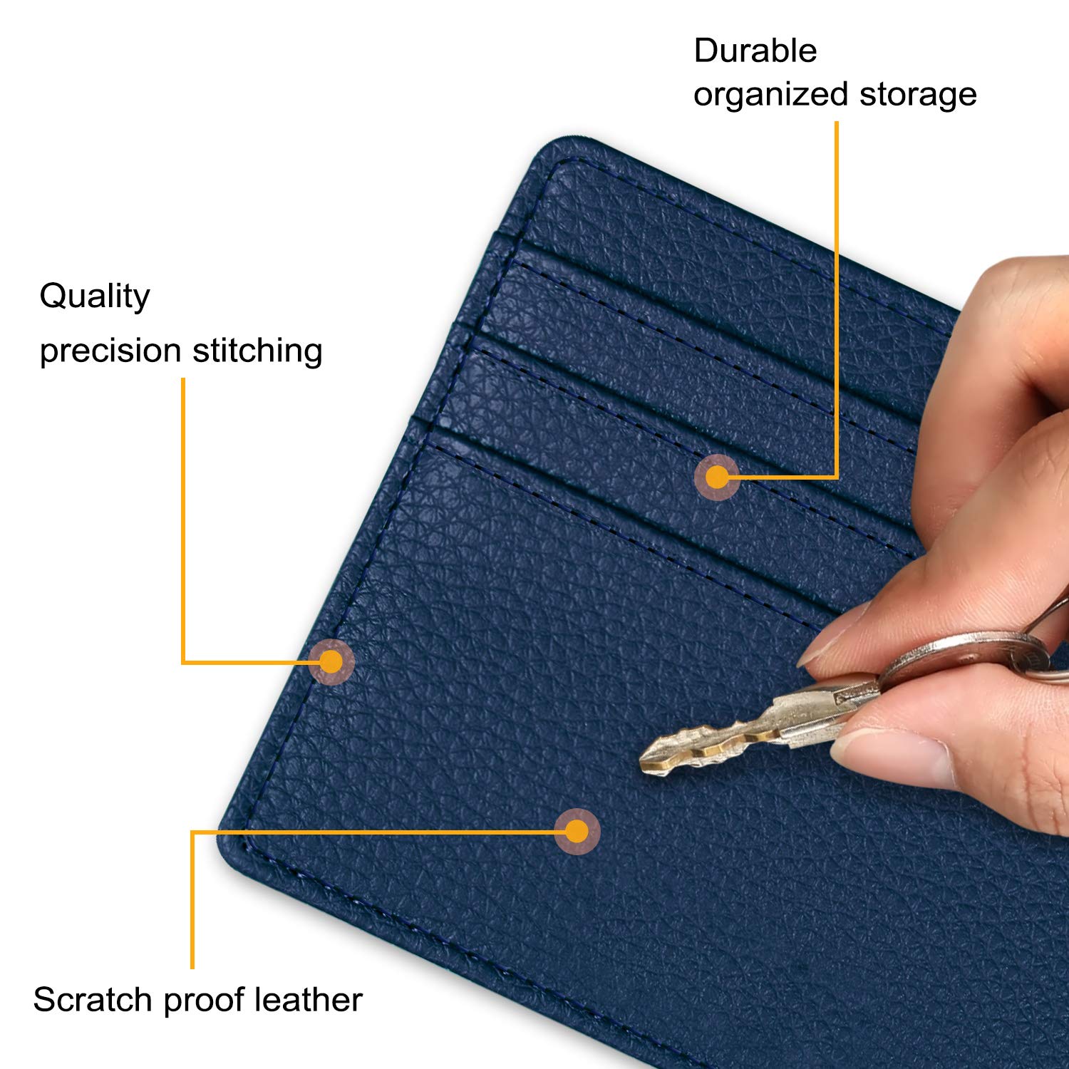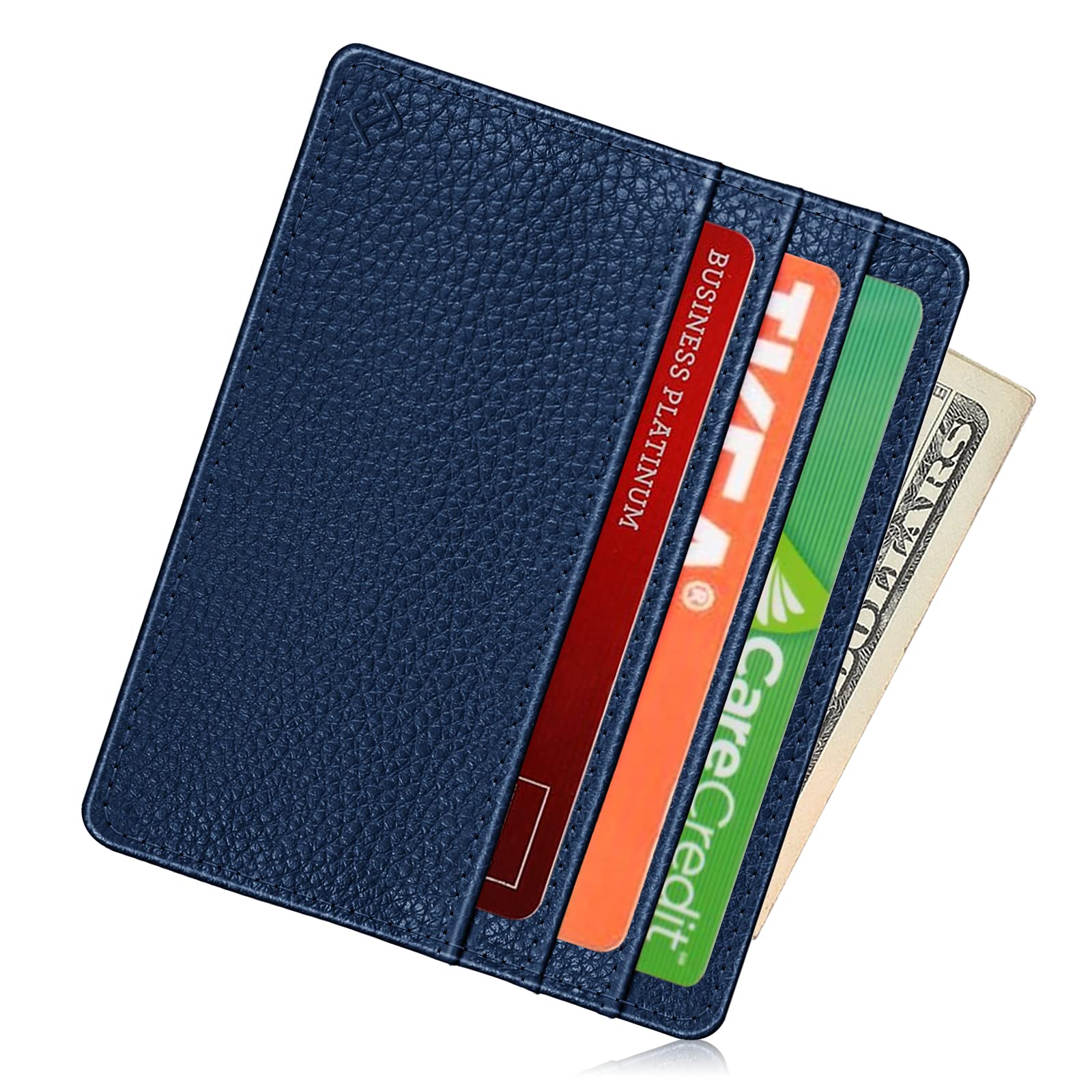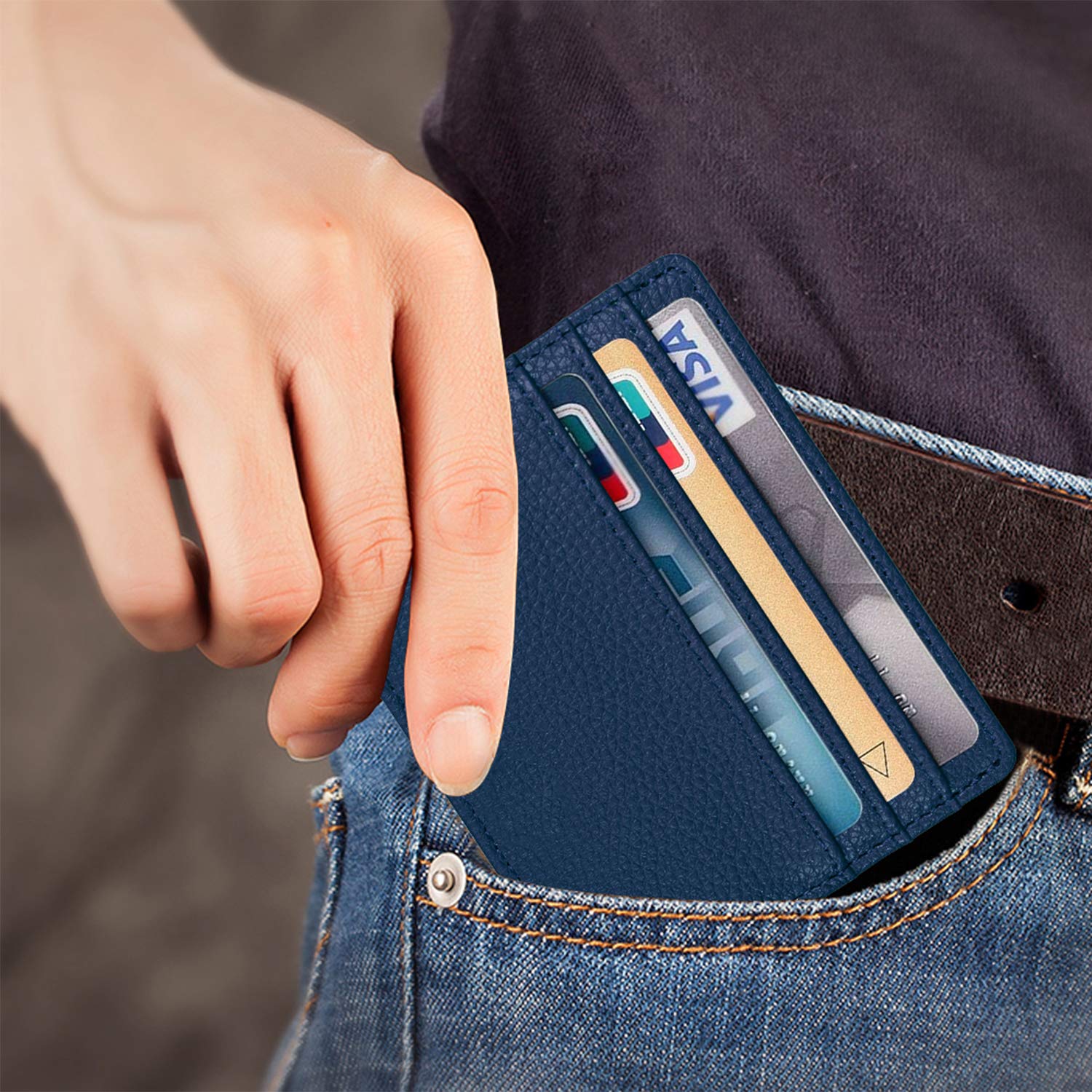 FINTIE Smukły minimalistyczny portfel z kieszenią przednią, blokowanie RFID, etui na karty kredytowe z okienkiem na dowód osobisty, dla mężczyzn i kobiet, granatowe