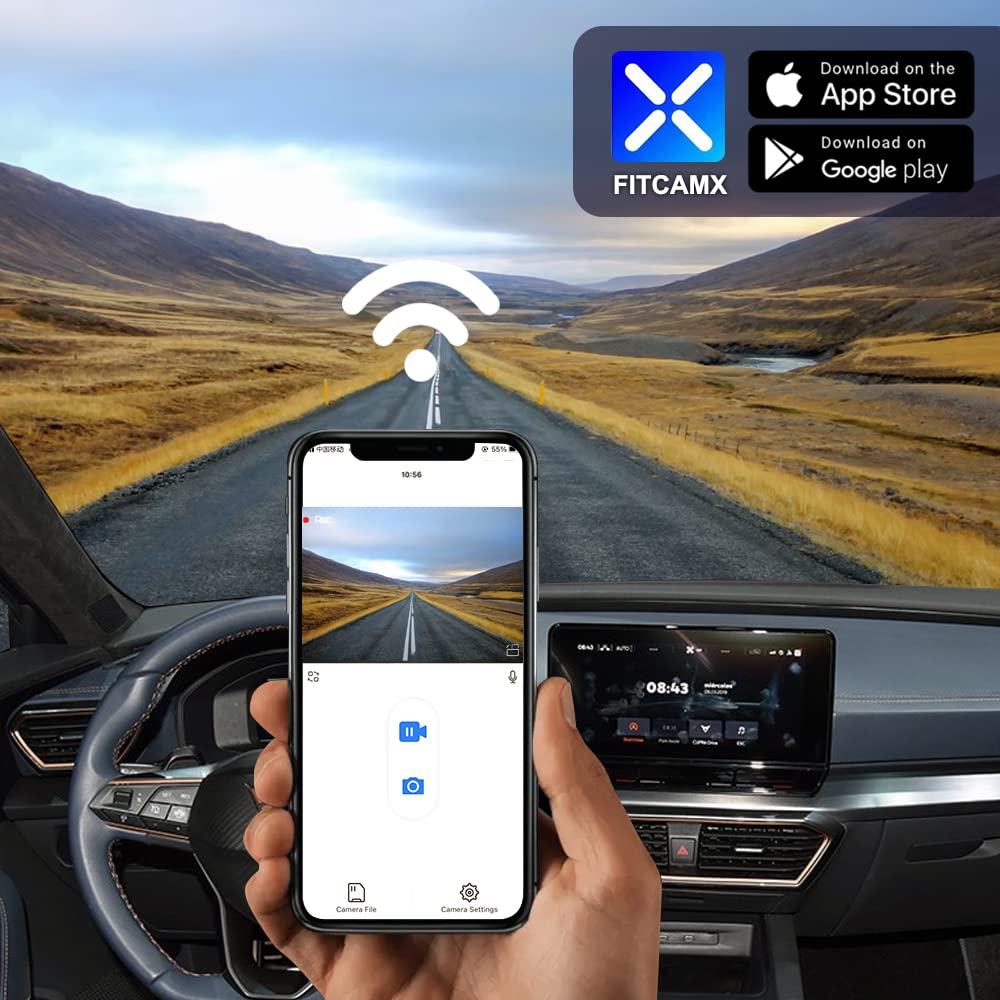 - 【Einfach zu bedienende FITCAMX-APP】 Die Autokameras haben eingebautes WiFi. Nachdem das Mobiltelefon mit dem WLAN verbunden ist, können Sie das Video in der FITCAMX APP ansehen. Sie können Videos auch bearbeiten und in sozialen Medien teilen. Auto Dashcam unterstützt iOS und Mobiltelefone. Keine Registrierung erforderlich, kostenlos nutzbar.