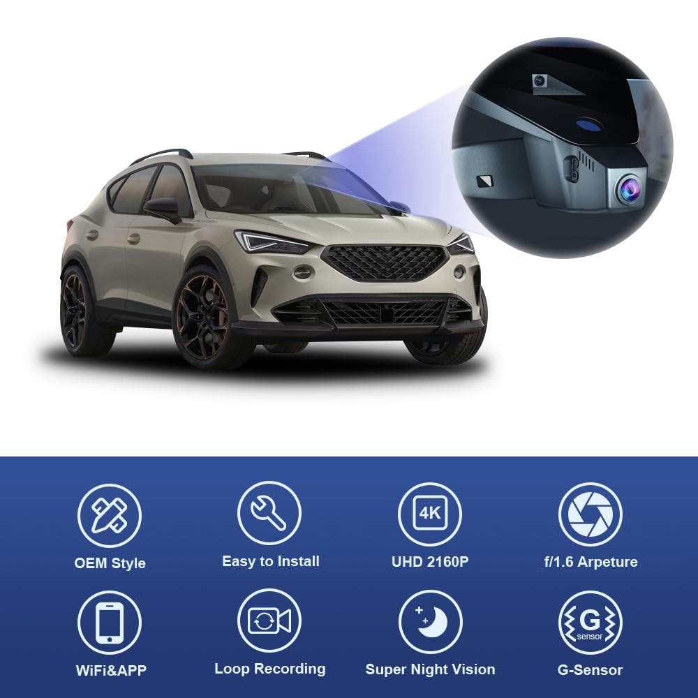 - 【Kompatibel mit Cupra Formentor&Volkswagen Golf Mk8】Dashcam Kompatibel mit Cupra Formentor 2021 2022 2023 2024. Autokamera Kompatibel mit Volkswagen Golf Mk8 GTE GTD GTI R. Diese car camera passt perfekt wie OEM, keine unordentliche Verkabelung oder Klebstoffe erforderlich, keine wackeligen Saugnäpfe an der Windschutzscheibe. Bitte kontaktieren Sie uns und senden Sie bei Bestellung Bilder des Rückspiegels.