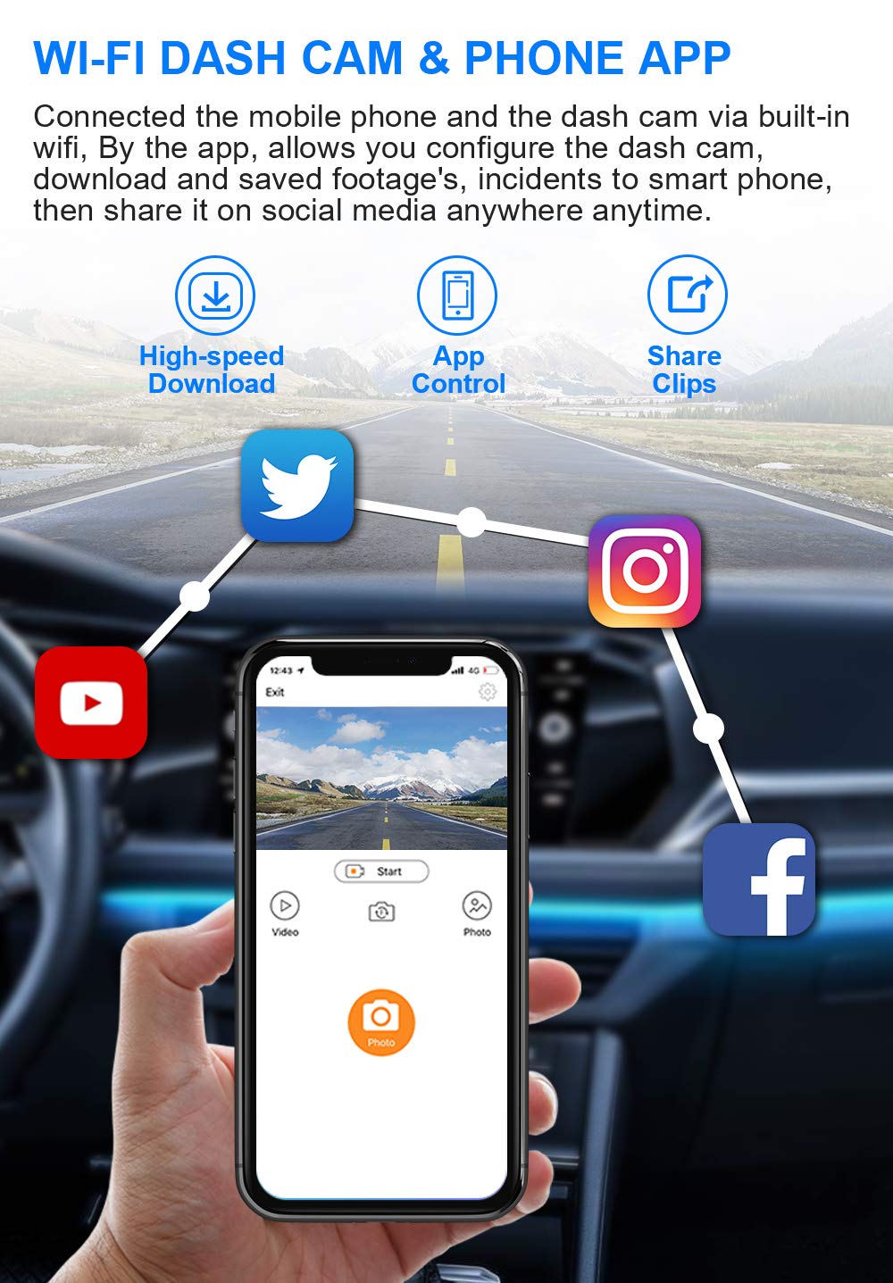 ✅ 【Łatwa w użyciu: 【Łatwa w użyciu aplikacja FITCAMX】 Kamera na deskę rozdzielczą ma wbudowane WiFi. Po podłączeniu telefonu komórkowego do Wi-Fi, możesz oglądać wideo w aplikacji FITCAMX. Możesz także edytować filmy i udostępniać je w mediach społecznościowych. Obsługuje iOS i telefony komórkowe. Nie wymaga rejestrac