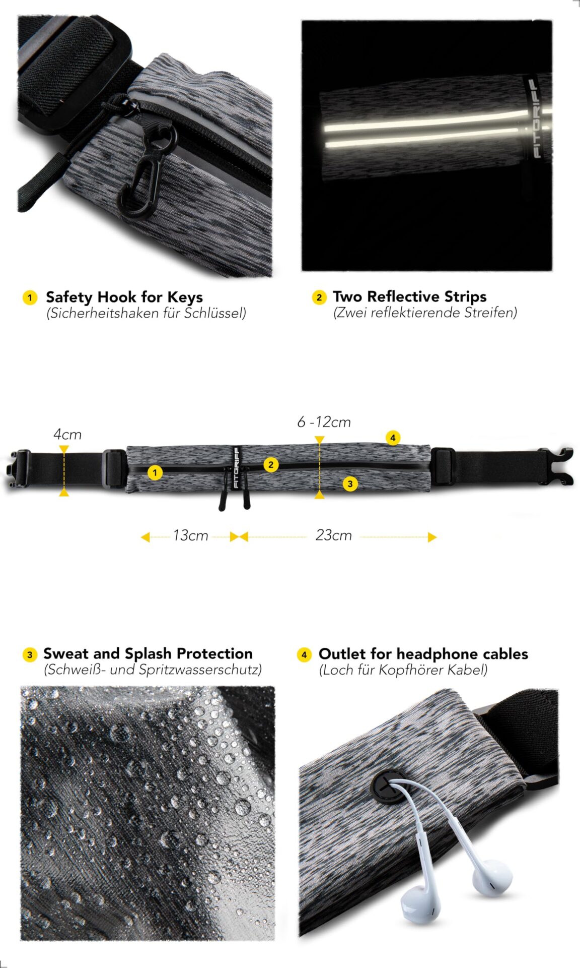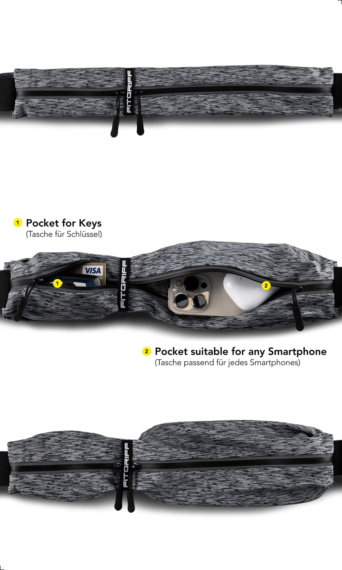 Fitgriff® Pas do biegania na telefon, torba na brzuch, do biegania, sportu, fitnessu, wodoodporny pasek do klapki, dla kobiet i mężczyzn (szary 2, jeden rozmiar pasuje do wszystkich)
