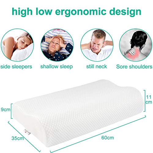 Ergonomiczna konstrukcja –: Ergonomiczna konstrukcja – wysokie i niskie zakrzywione powierzchnie poduszki z pianki memory na obu końcach zapewniają indywidualne dopasowanie, aby zadowolić różnych śpiących i jednocześnie umożliwić spokojniejsze oddychanie i przyjemny sen.