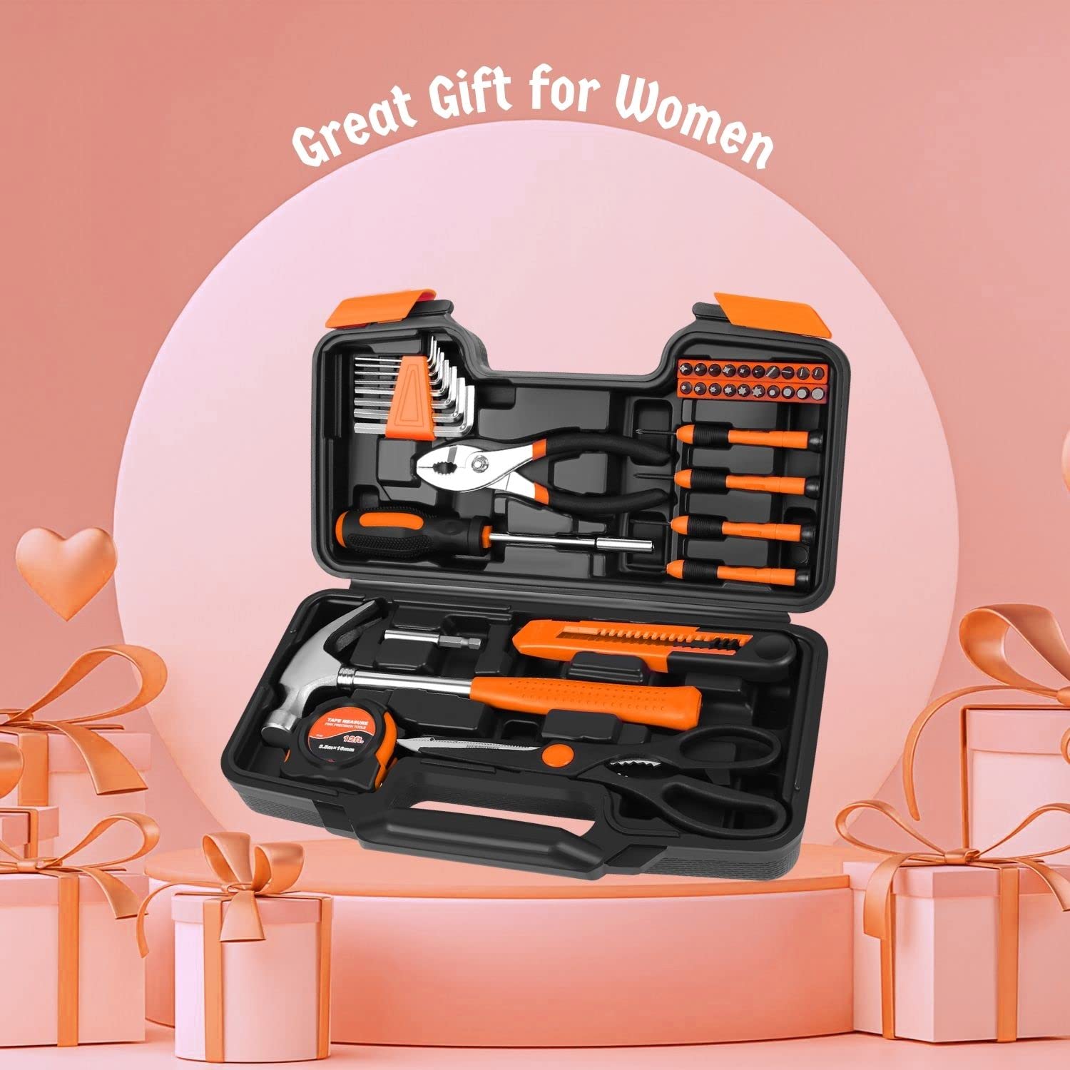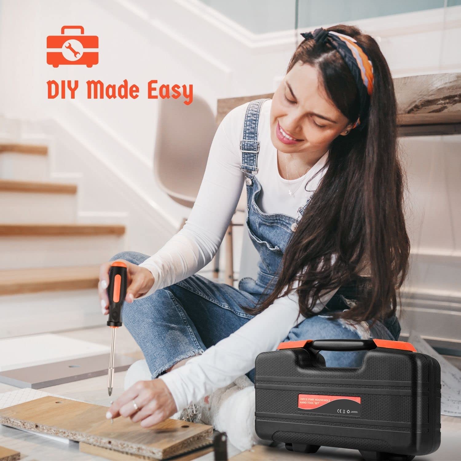 Flexzion 39-częściowy zestaw narzędzi ręcznych z etui, kompaktowy zestaw narzędzi dla majsterkowiczów, dla właścicieli domów, do domu, z przenośnym podstawowym zestawem narzędzi, pomarańczowy