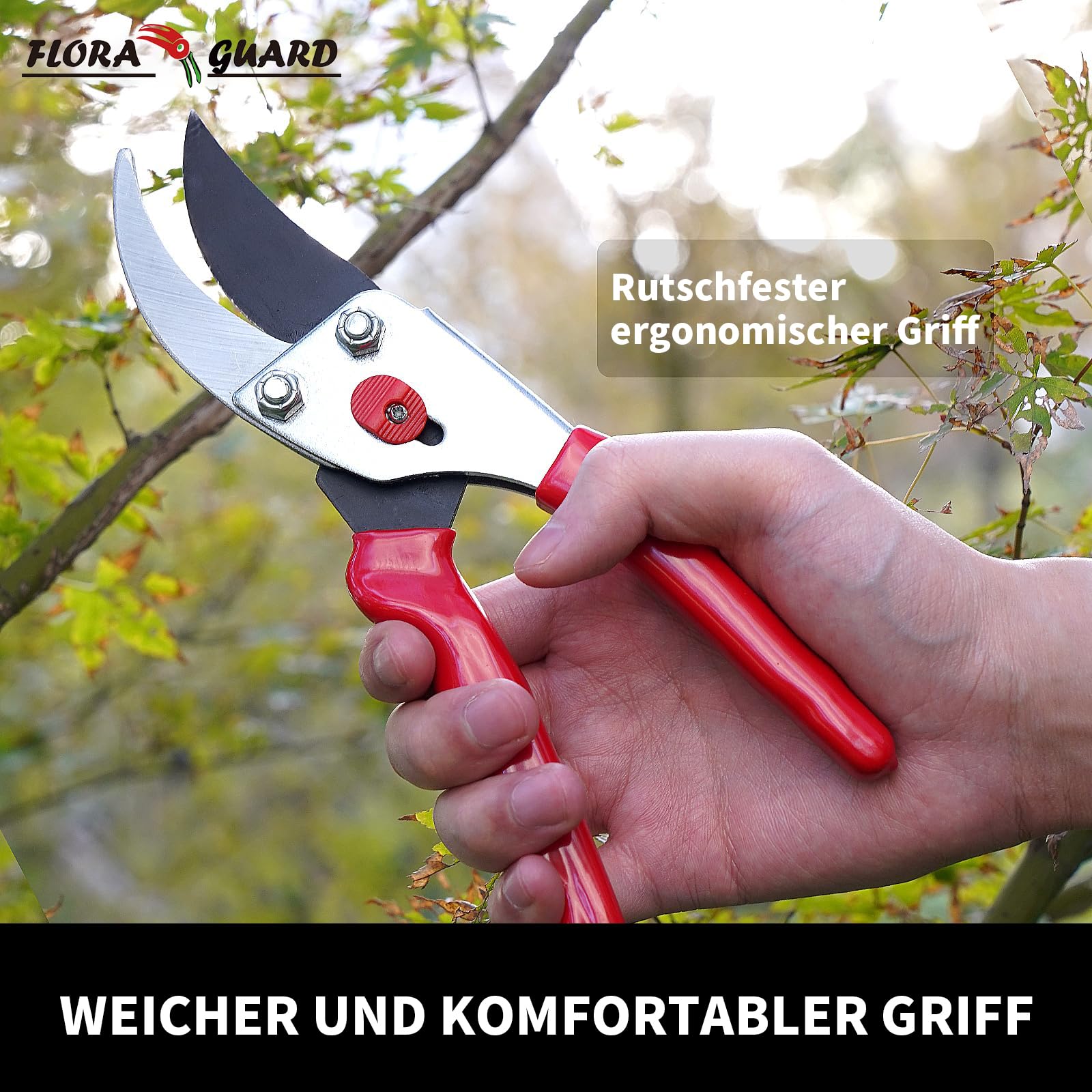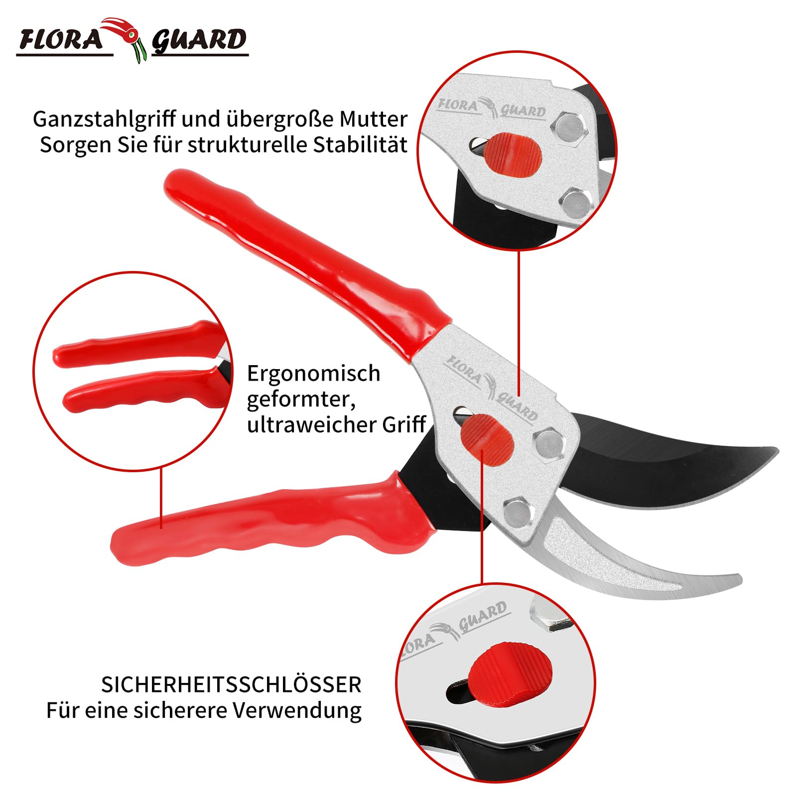 Profesjonalne sekatory FLORA GUARD do przycinania drzew i gałęzi – czerwone