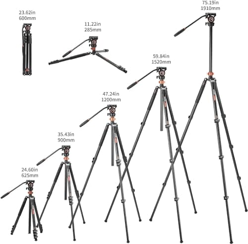 Statyw z płynną głowicą Cayer FP2450H4 to kompaktowe, ale trwałe narzędzie wykonane z aluminium, które zapewnia trwałość przy minimalnej wadze. Statyw składa się do 25,6 cala i może obsłużyć do 13,2 funta, co czyni go idealnym dla lustrzanek cyfrowych, kompaktowych kamer i kamer kina cyfrowego.