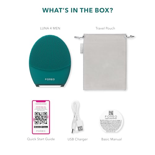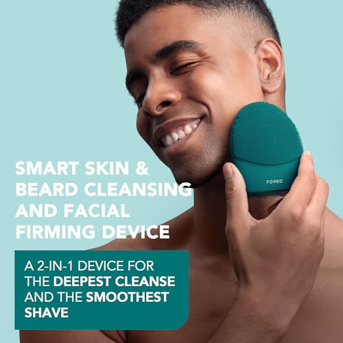 FOREO LUNA 4 MEN Szczotka do oczyszczania twarzy do skóry i brody, ujędrniający masażer twarzy, przeciw starzeniu się, zwiększa wchłanianie produktów do pielęgnacji skóry, podłączona do aplikacji,