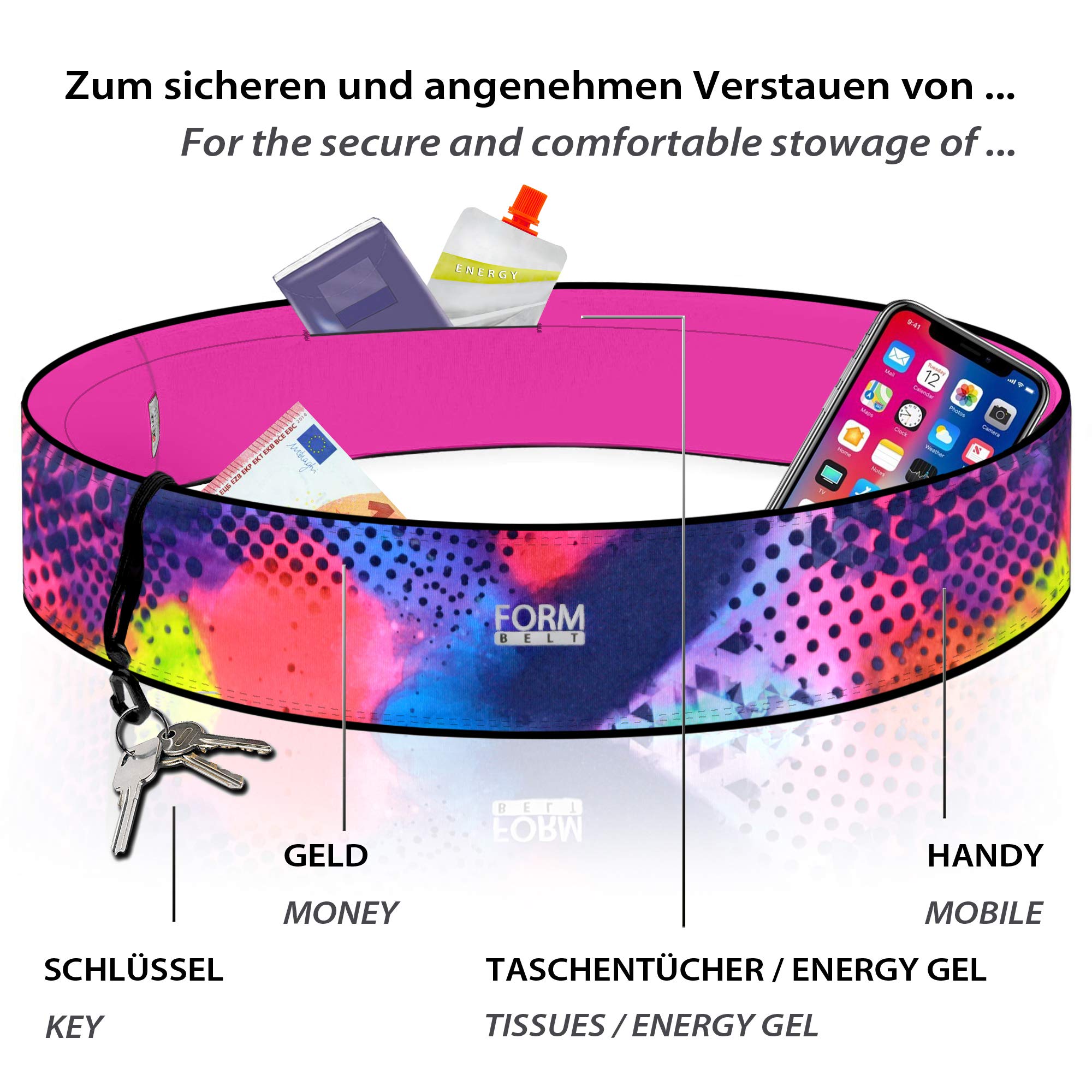 Formbelt® Pasek do biegania do telefonu komórkowego, smartfona iPhone 8 X XS XR 11 6-s 7+ Plus, Samsung Galaxy S7 S8 S9 S10 Edge, torba biodrowa do uprawiania sportu, fitnessu, biegania, torba na brzu