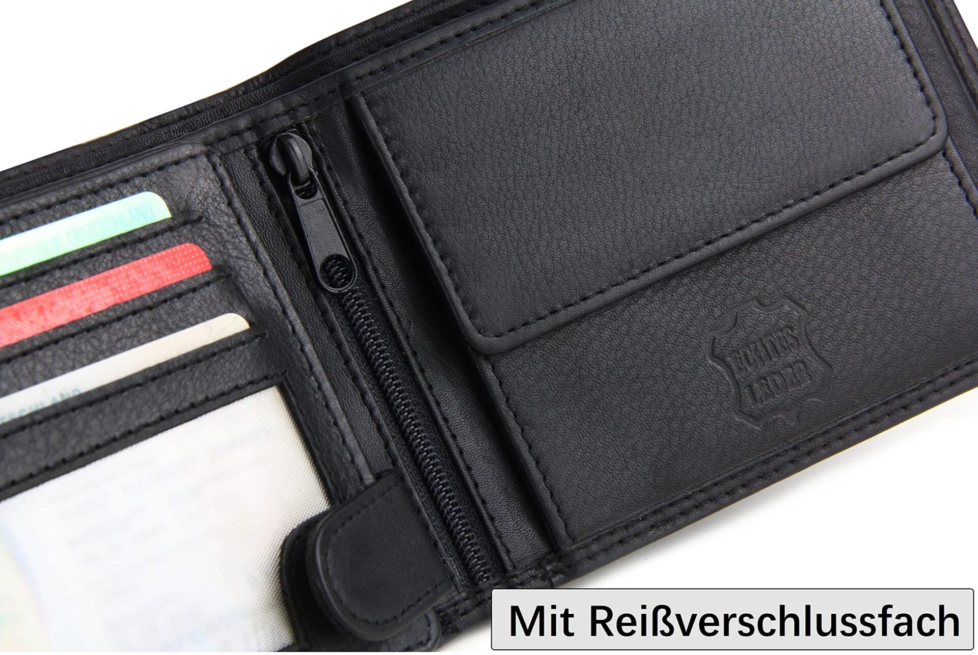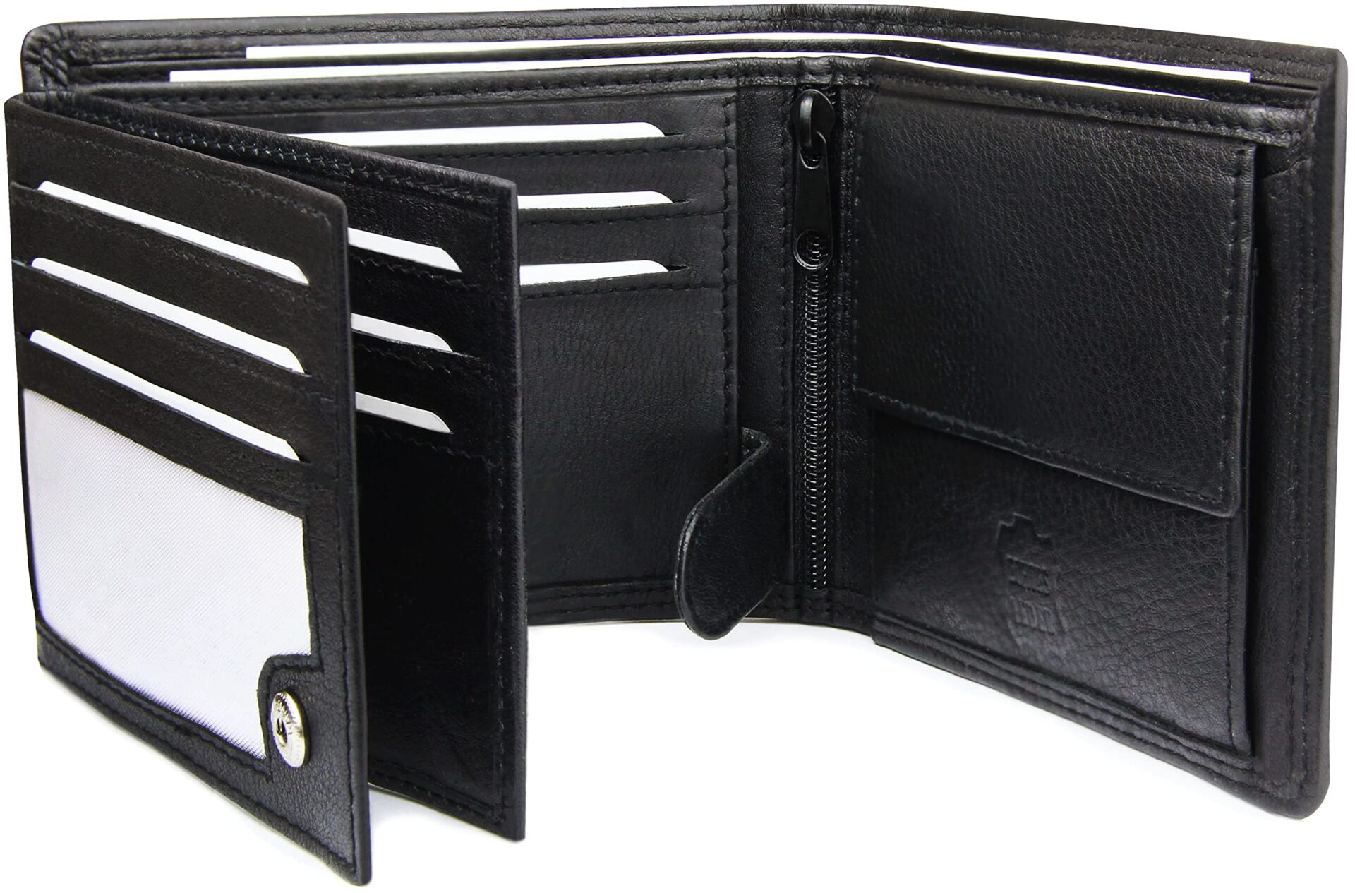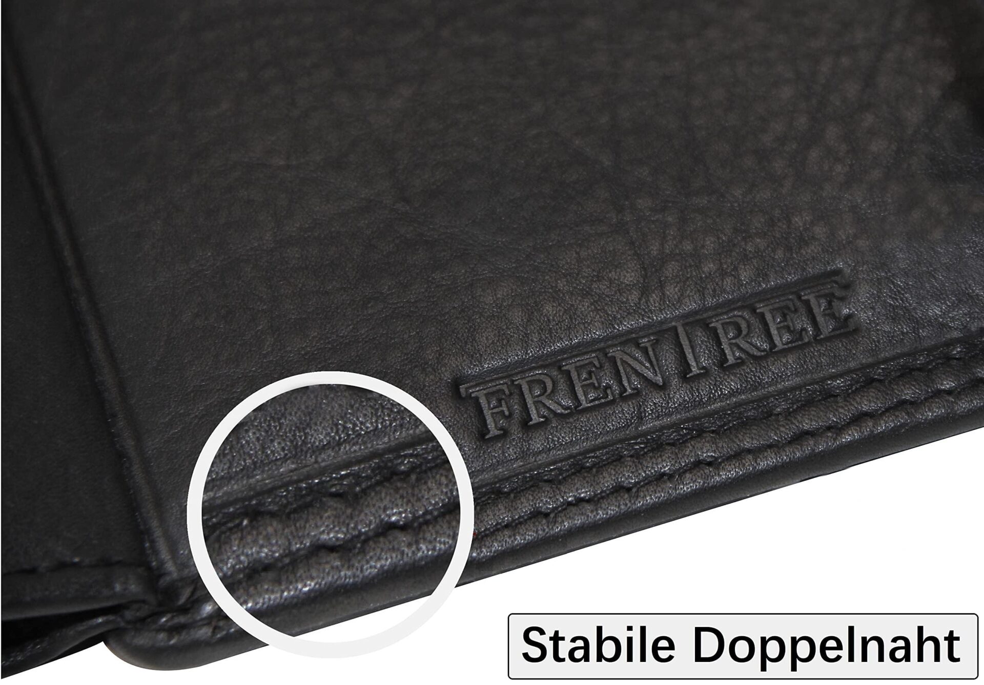 Frentree® Męski portfel ze skóry Nappa z ochroną RFID, 12 przegródek na karty, format poziomy, czarny, czarny, Klassisch, Format poziomy