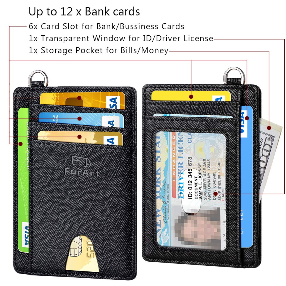 FurArt Smukłe etui na karty kredytowe, blokowanie RFID, 7 przegródek, minimalistyczne etui na karty kredytowe dla mężczyzn i kobiet
